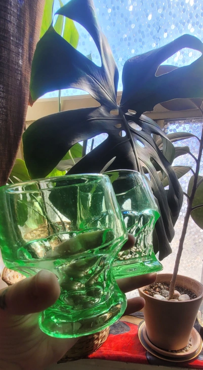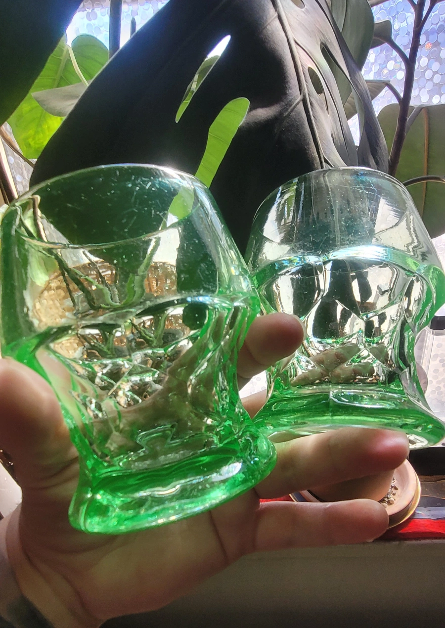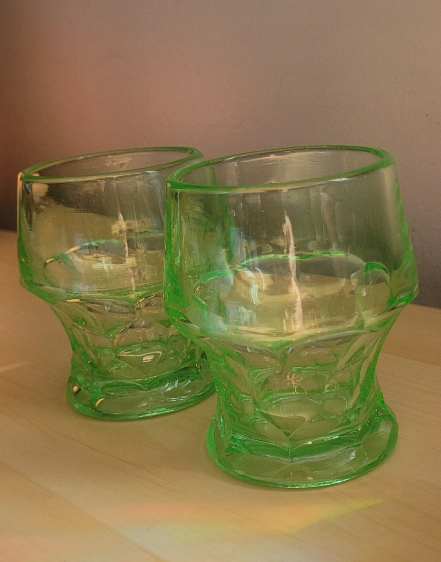 Two lovely vintage URANIUM glass tumblers. Unique design. Perfect for cocktails or display. Great addition for any collectors ✨️ open to trades