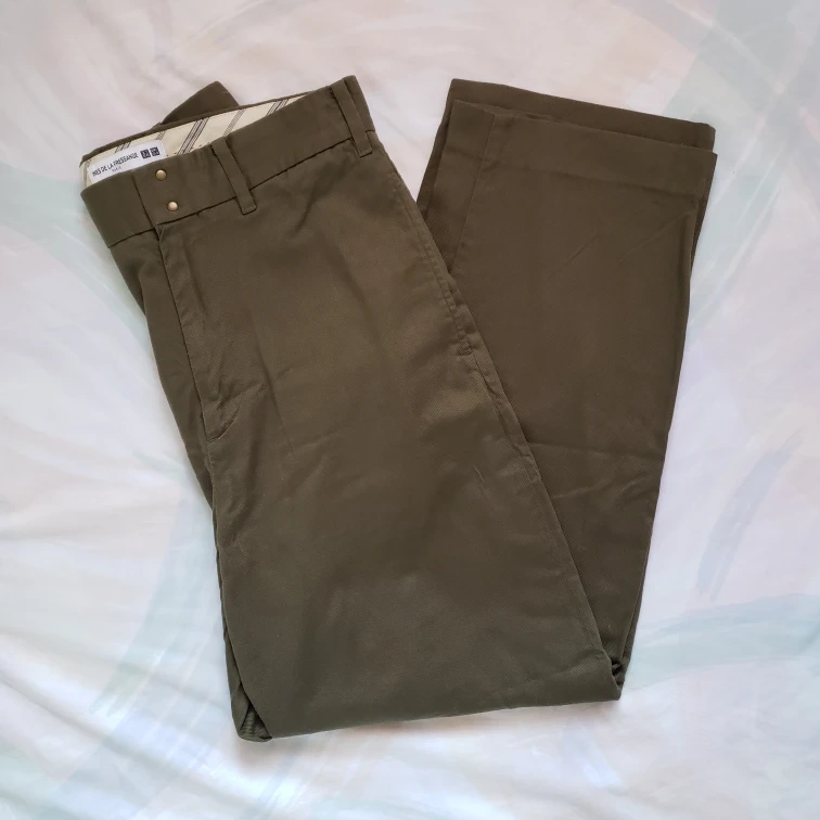 Selling a pair of chino wide pants in olive green from UNIQLO Pants are designed for comfort and breathability Made with soft 100% Cotton Size: Women's US 6 Tag was removed, but it's new and was stored away. It's in excellent condition and pocket seams still intact! Retail Price: $69.99 before tax Hoping the item finds a new home! From a smoke-free & pet-free home Cash only & exact change All sales are final; no refunds or reservations Pick-up only Location: Richmond Hill Serious inquries only; messaging only through Karrot Thank you for your interest & please check my 200+ listings for more!