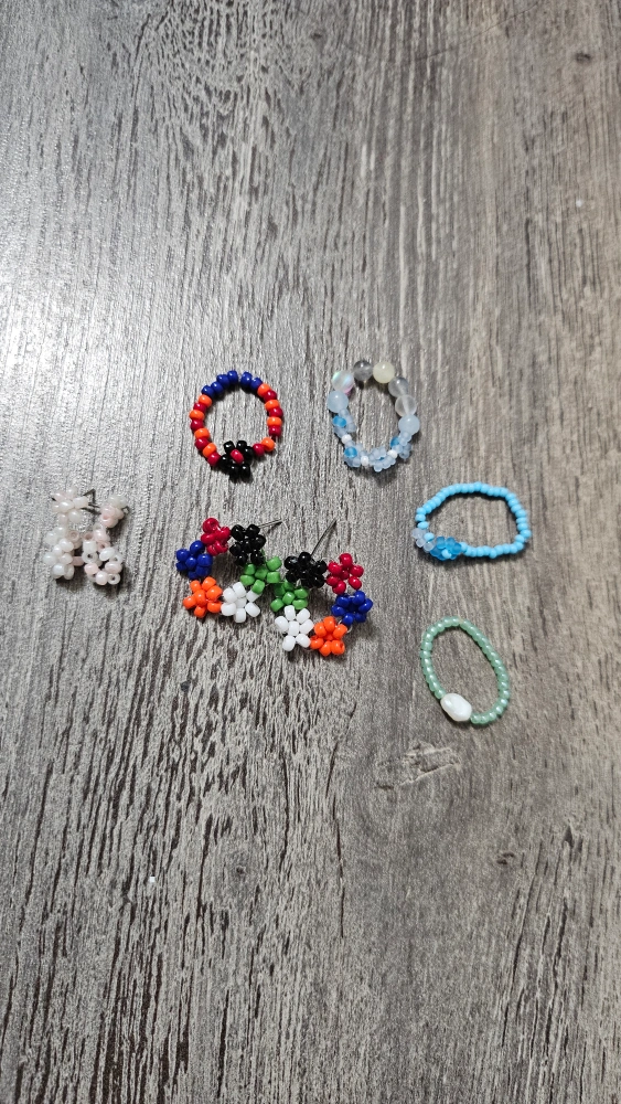 Set of handmade beaded jewellery. Rings 5$ each Earrings 10$(each pair) Freshwater pearl/Gemstone