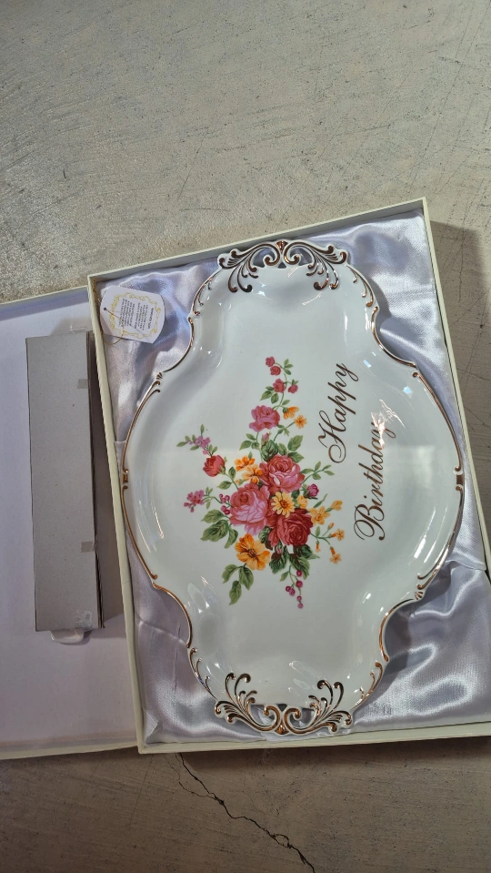 Floral Happy Birthday Serving Platter "HAPPY BIRTHDAY" Ornate porcelain serving platter. Features gold detailing and floral design. New in box. serving tool included.