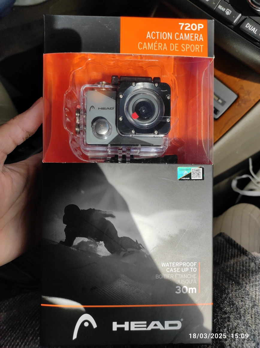 New HEAD action camera. 720p resolution. Waterproof case up to 30m. Great for sports and outdoor activities. totally new package
