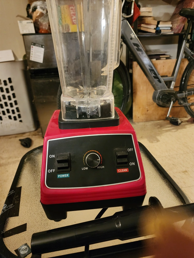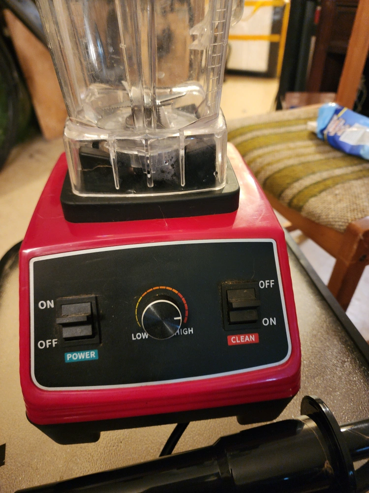 New commercial blender. Red plastic housing. Clear plastic blending jar. Two speeds, high and low. Includes on/off switch and clean button. Power cord included. has not been used i have had it for a year or so and I was going to use it for business but due to an illness it never happened comparable new price pic posted. I paid less than half of comparable. I would be open to trading for a recliner or comfortable accent chair or a Amazon gift card. I'm trying to sell items I have no use for anymore I actually need livingroom furniture so sales are going towards that please if you can help me out