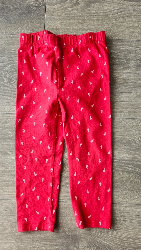 Adorable red leggings. Features a candy cane pattern. Soft cotton material. Great for the holidays.