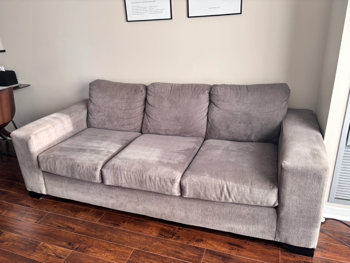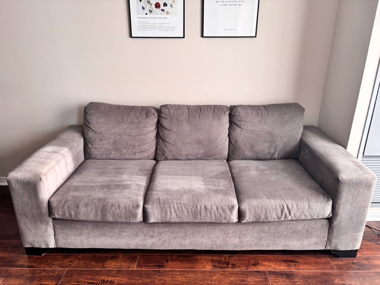 Selling as we’ll move out and need larger sofa • Fava sofa from Leon’s furniture • Gently used • No pet, no smoking • Some stains as shown • Pickup available in weekdays (Condo near Yonge & Finch) My husband can help to move to the ground if a man comes for pickup Product dimensions: • Width: 210cm (82”) • Height: 82cm (32”) • Depth: 94cm (37”)