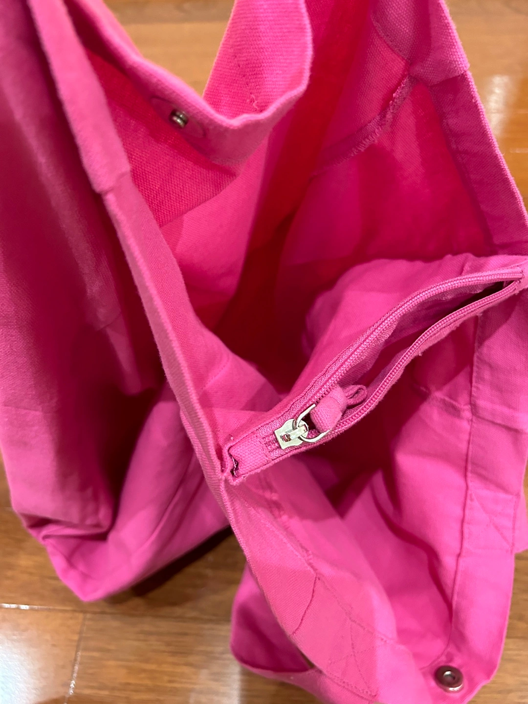 Large pink canvas tote bag. Features two shoulder straps and a zippered pocket. Formless. Cotton. Nice bubble pink color! Very spring like 🌸 $5 cash Pick up near Hillcrest Mall, Richmond hill
