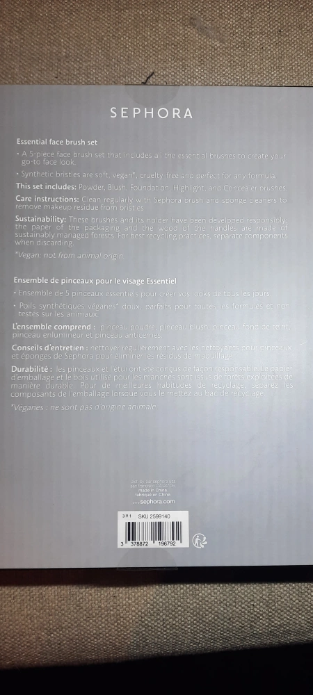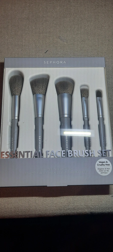 Five-piece face full size brush set. Includes all essential brushes to create your go-to face look. Vegan and cruelty-free. Easily removes residue from bristles. Sephora brand sets start at $45+
