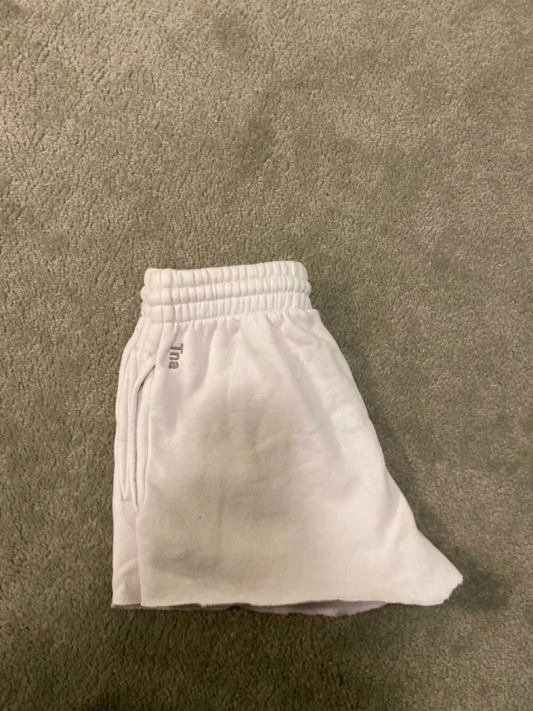 Aritzia TNA Light purple sweatshorts. Elastic waistband with drawstring. The bottoms are distressed and cut up, looking for super cheap. Price is negotiable, willing to take different forms of payment (ex. Gift card)