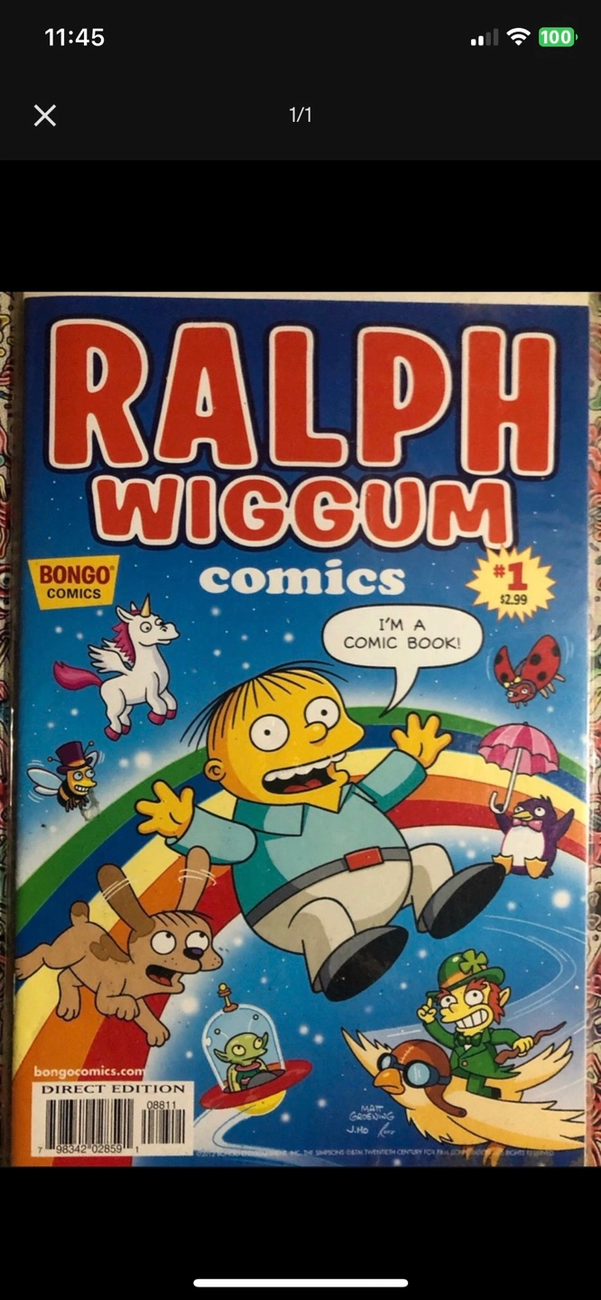 Bongo Comics presents Ralph Wiggum Comics #1 “I’m a comic” variant Like new, no folds, scratches or dents Curb side pickup Cash only Buy multiple items for a discount