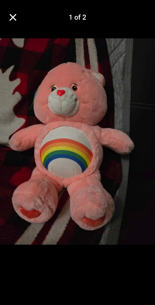 Pink Cheer Bear plush. Rainbow on tummy. Vintage collectible. has tags and still working