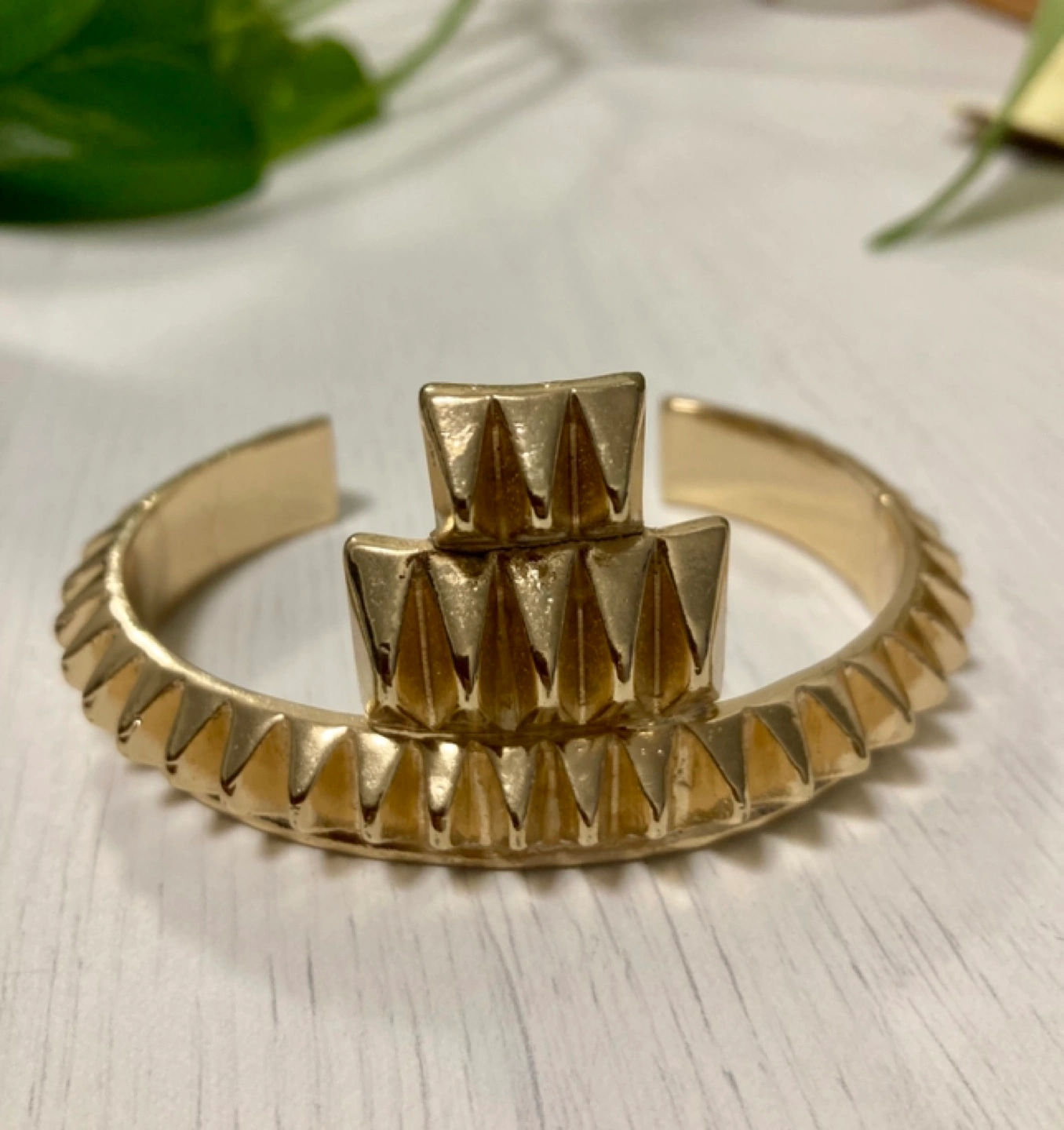 New Art Deco style bangle, fits up to 7.5” wrist. Purchased at a boutique in Paris, worn for a couple of minutes for a photoshoot. Not real gold - clearing out my costume jewelry from my film/fashion days, see my profile for more ! SFPF home. Pick up Kingston road and Dundas street east.