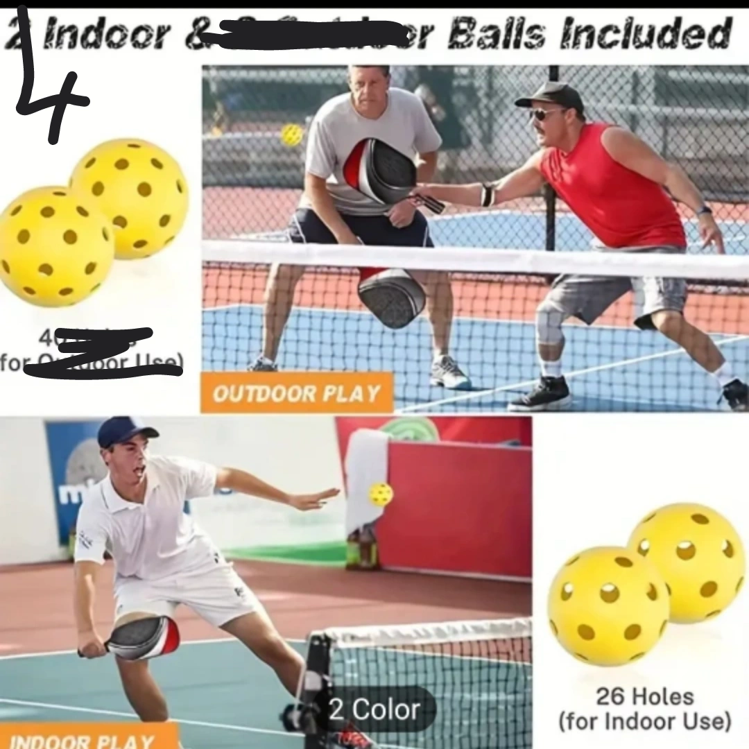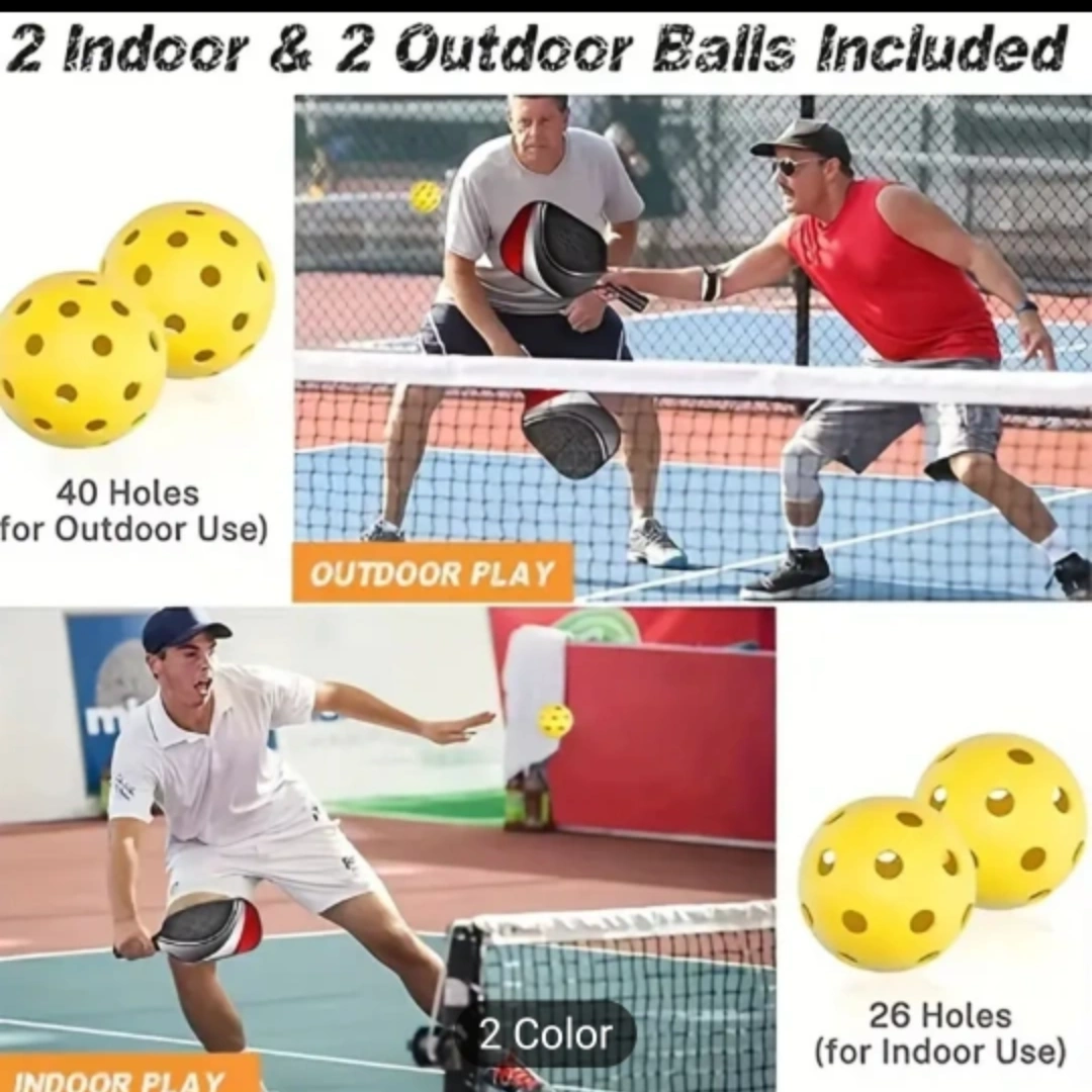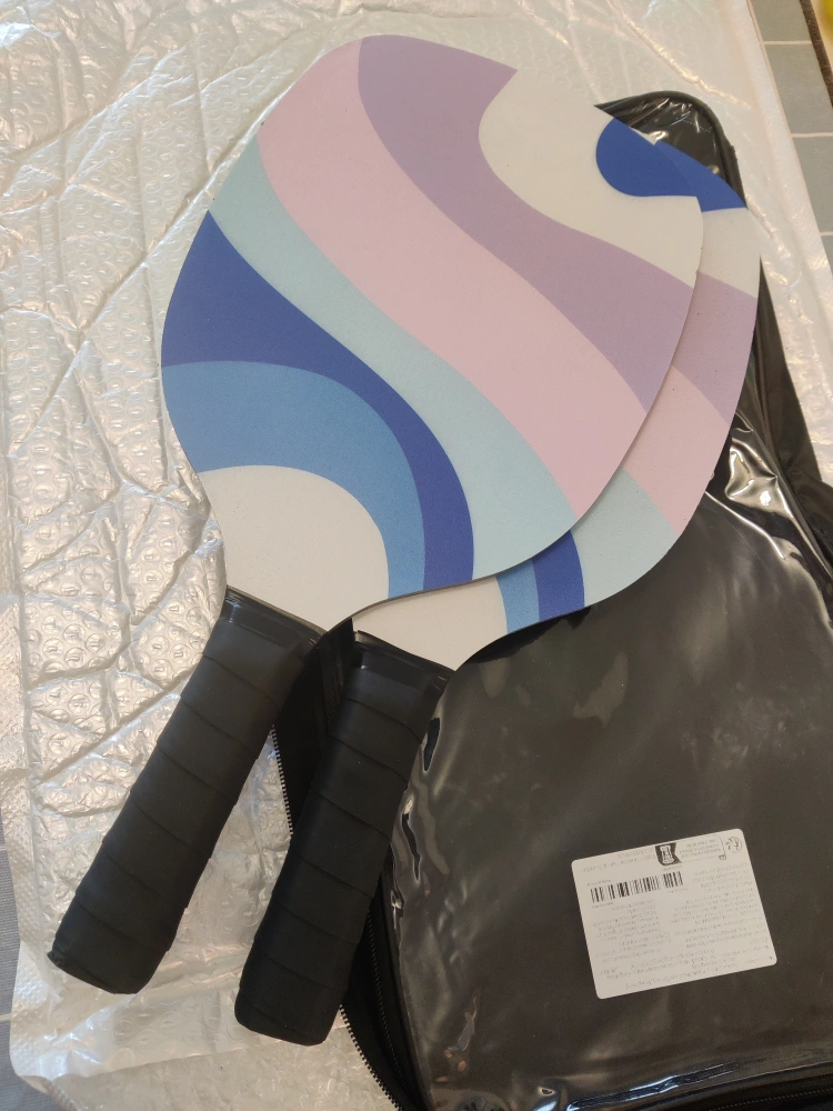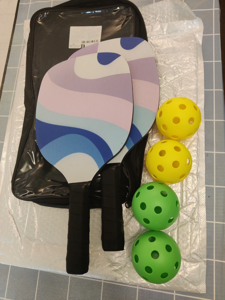New pickleball set. Includes two paddles with colourful design and four balls. Comes with a carrying case. Great for recreational play. wood. From a no pet non smoking home Meetup near Finch and Yonge Cash only Please check other listings on my profile :)