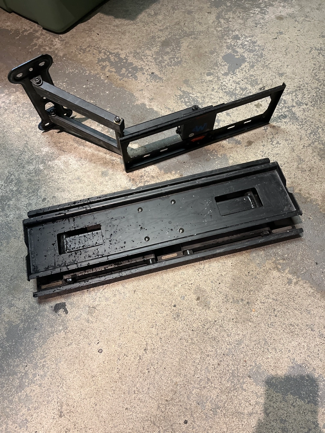 Black metal TV wall mount. Extending arm. Two pieces. Used condition.