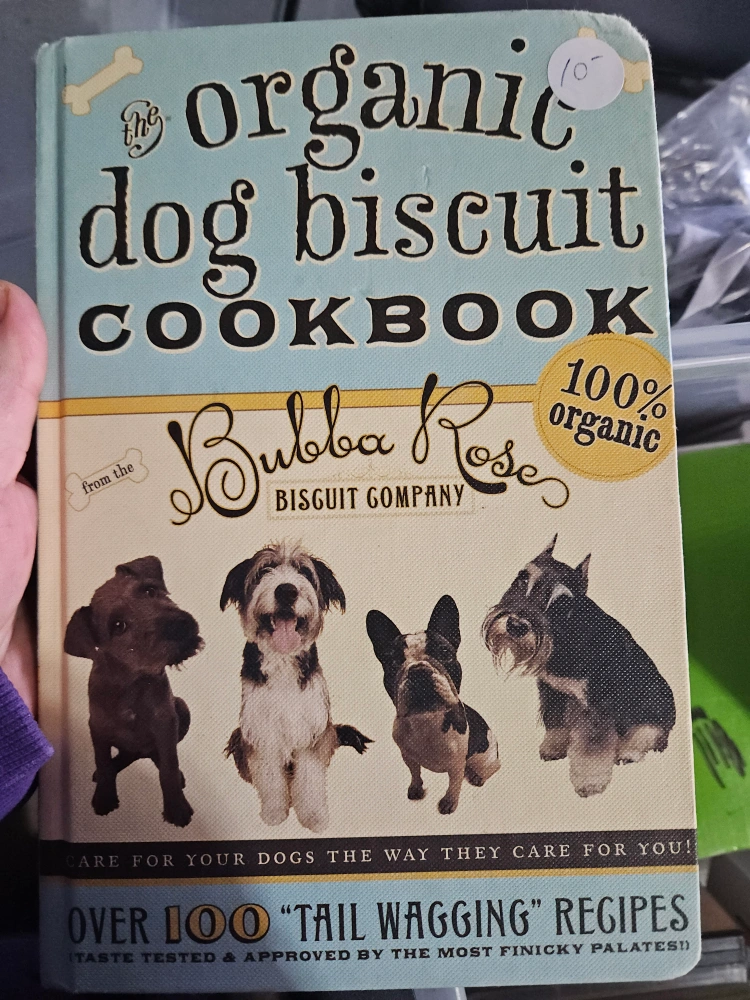 Collection of five used books. Titles include *At Home with Plants*, *The Organic Dog Biscuit Cookbook*, *Rescue Road*, *For Bea*, and *Pennies from Heaven*. Various authors and genres. 5.00 each