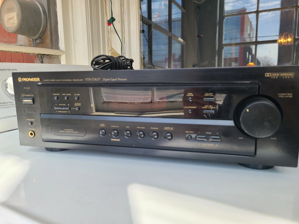 Pioneer VSX-D407 7.1-channel digital processor. Includes power cord. Pre-owned, showing some wear. Vintage.