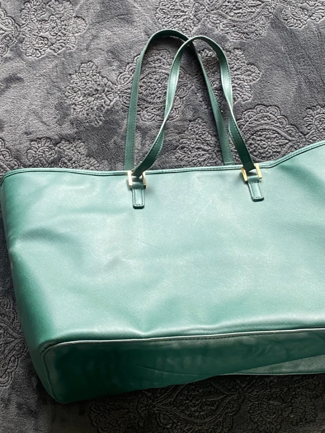 New Large green tote bag. Gold hardware. Zippered interior pocket. Great for everyday use.