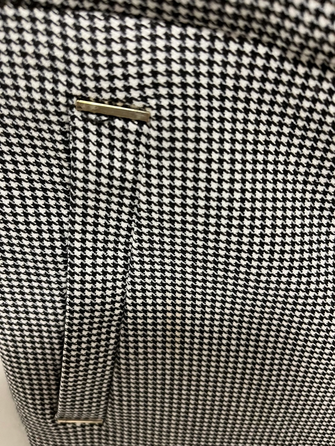 Women's pants, size 8. Black and white houndstooth pattern. Made in Cambodia. Pull-on style. Flattering fit.