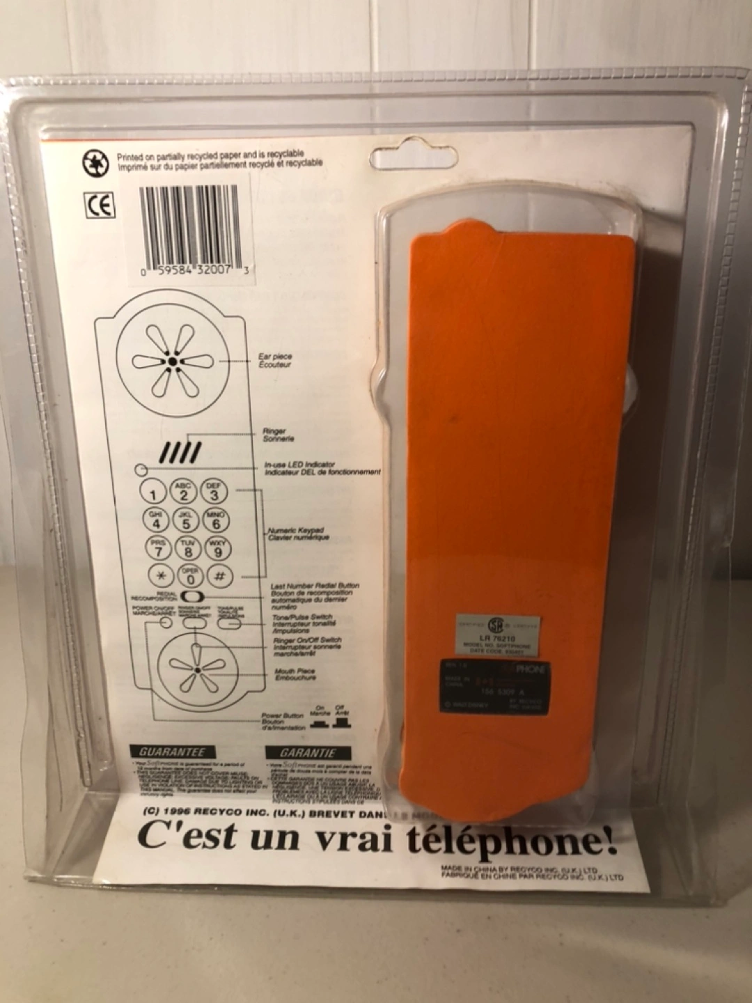 Unopened Collectible Mickey Mouse for Kids soft phone. Features Goofy design. Orange colour. Full function phone with 6 ft cord. Includes last number redial, on/off LED indicator, automatic redial, tone or pulse, ringer on/off switch. Package does have small tear in last pic Check my other posts