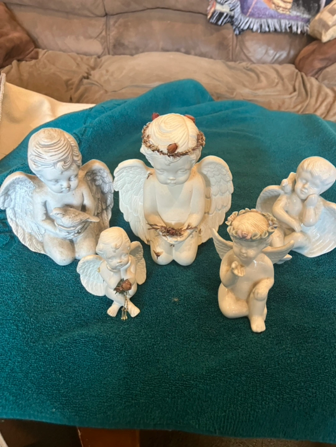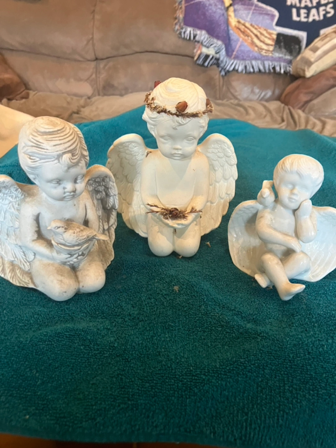 Unique collectible porcelain cherub angel figurines. Various poses, sizes & finishes. There is 1 that can hold a small plant, and 1 that sits on a shelf. $1.00each, or take all 7 for $5 Cash only, p/up in Thornhill, Yonge St south of Hwy 7/407