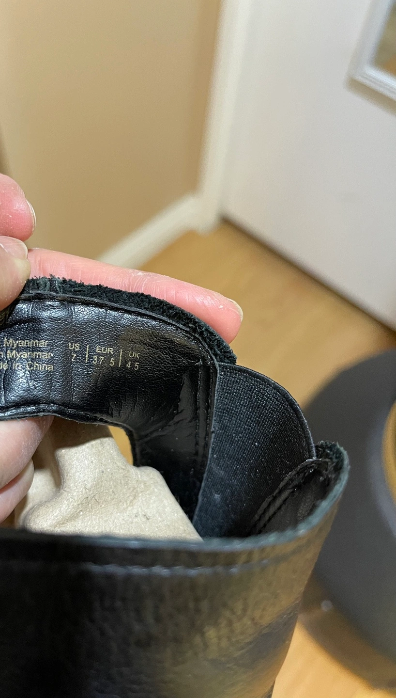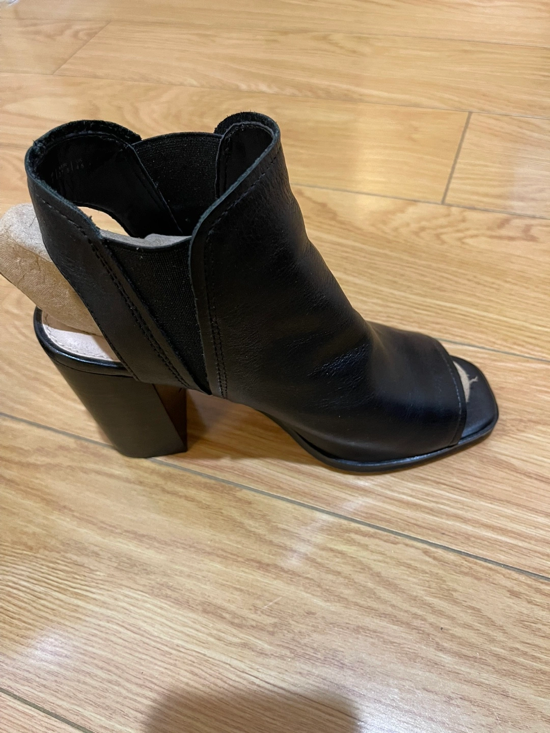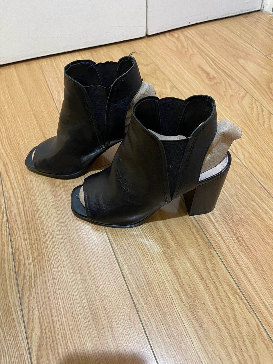 Stylish black leather booties. Peep-toe design. Block heel. Brand new never worn with price still attached to the bottom. Size US 7. Very flexible and comfortable.