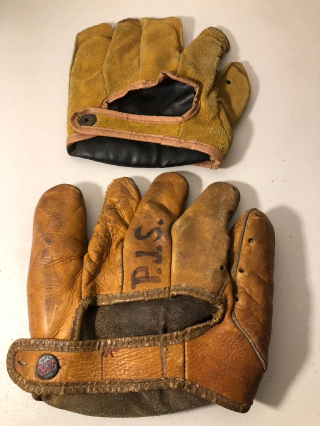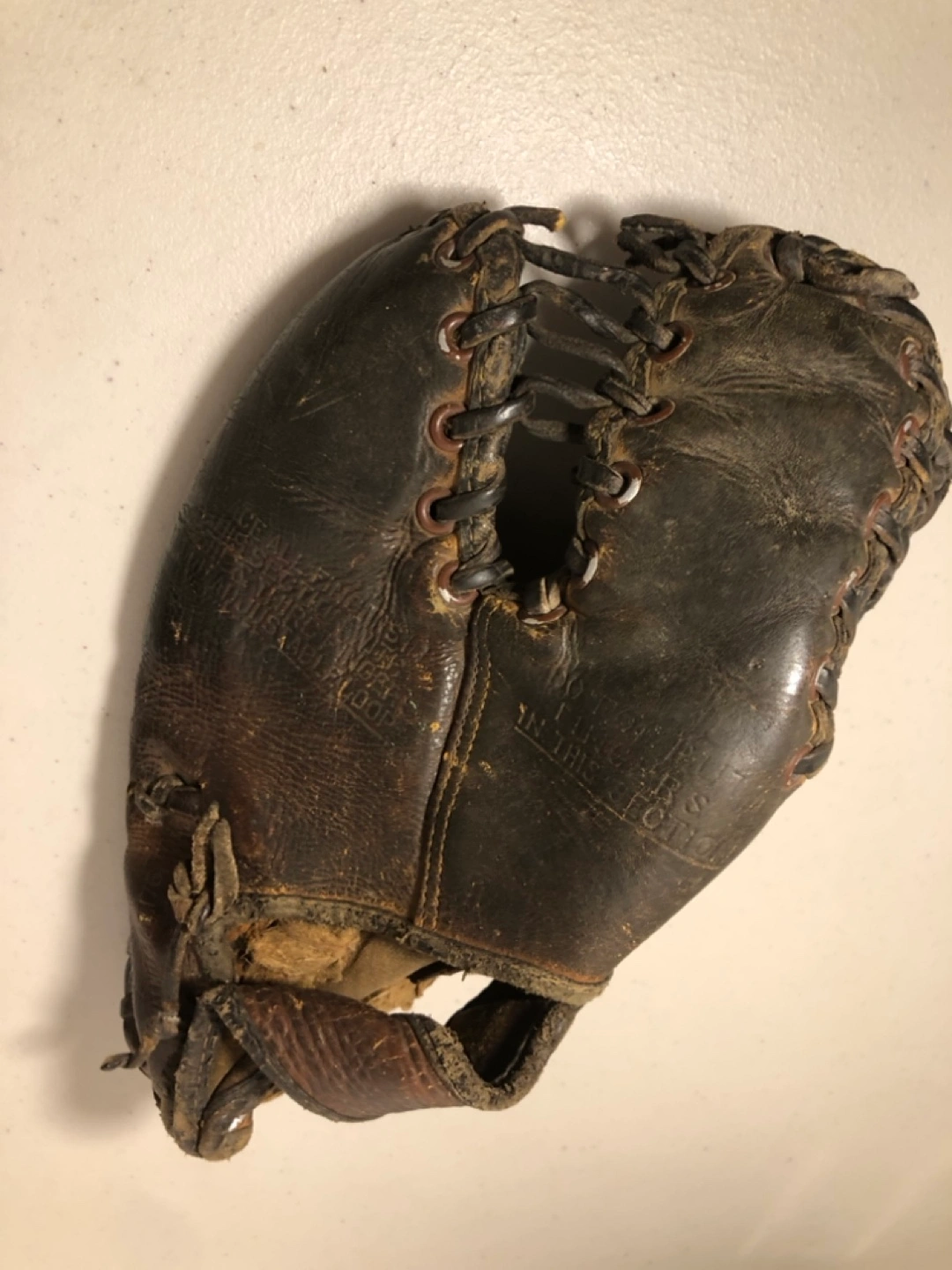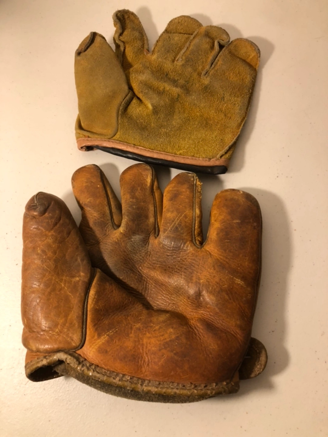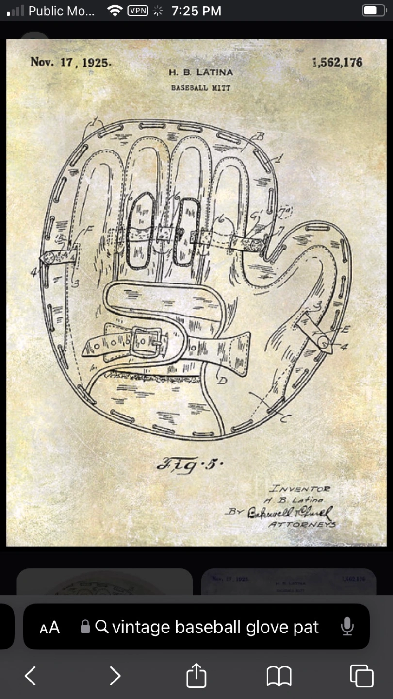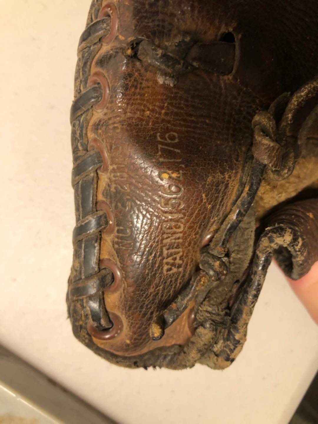 3 Vintage baseball glove. Leather. Shows significant wear and tear. Great for collectors to display. Dark leather glove has same patent # (3 pic )on it as drawing I found online 1925 Bargain at 15 for all 3 Check my other posts