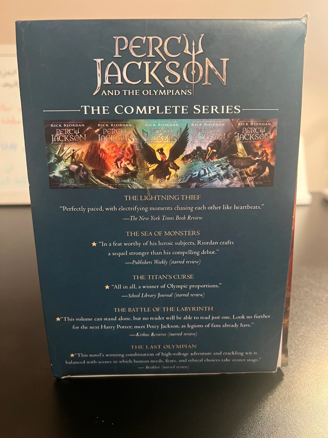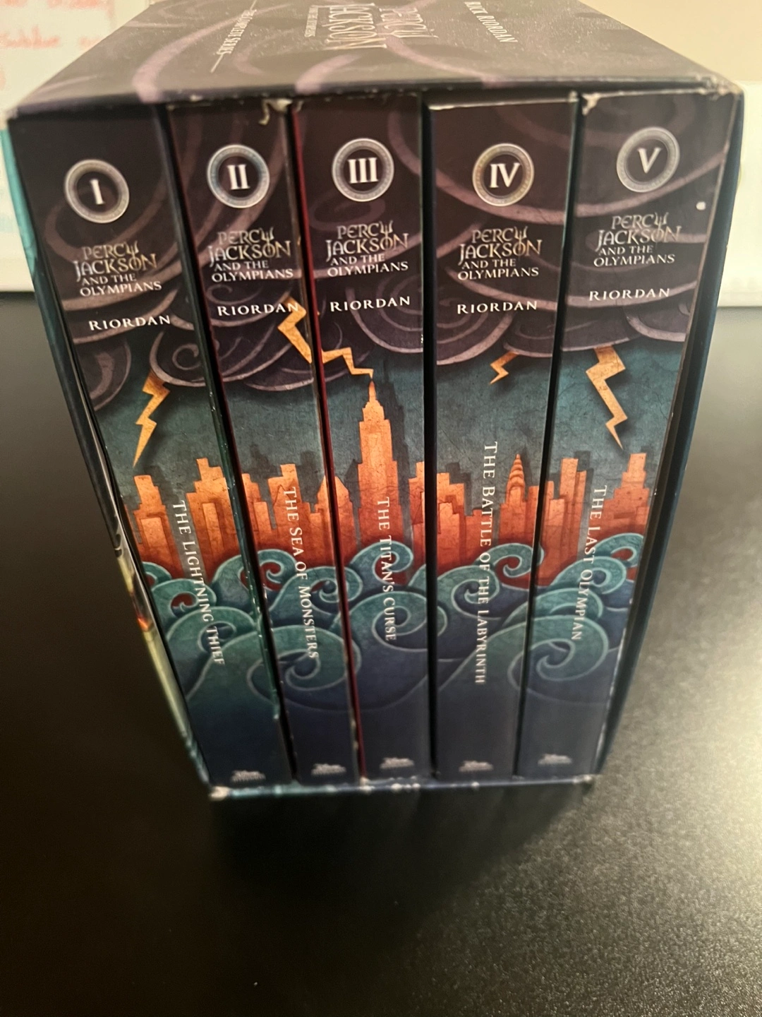 Complete five-book boxed set. Includes: The Lightning Thief, The Sea of Monsters, The Titan's Curse, The Battle of the Labyrinth, and The Last Olympian. New York Times #1 best-selling series. Not hardcover.