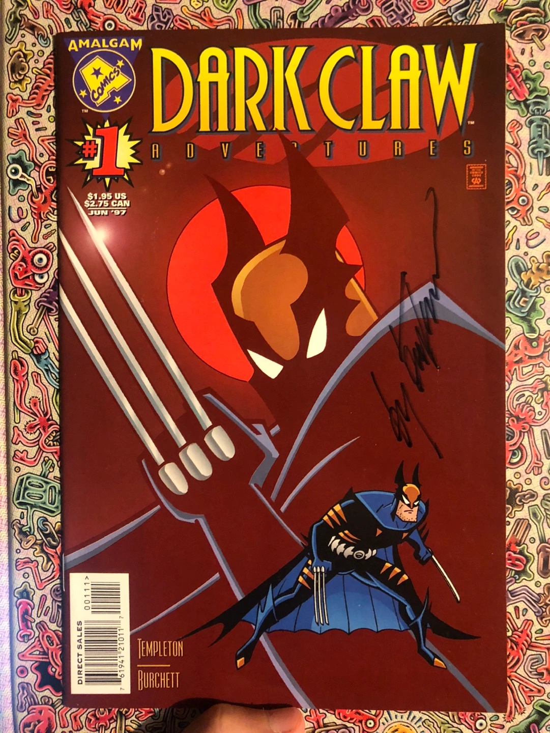 The first and only issue or Dark Claw Adventures 1997 from the Amalgam crossover between Marvel and DC. Batman and Wolverine mix to create Dark Claw and his cartoon adventures. Signed by writer and breakdown artist Ty Templton at FanExpo a million years ago. No rips or folds. Great condition Curb side pickup You pay shipping Buy multiple items for a discount