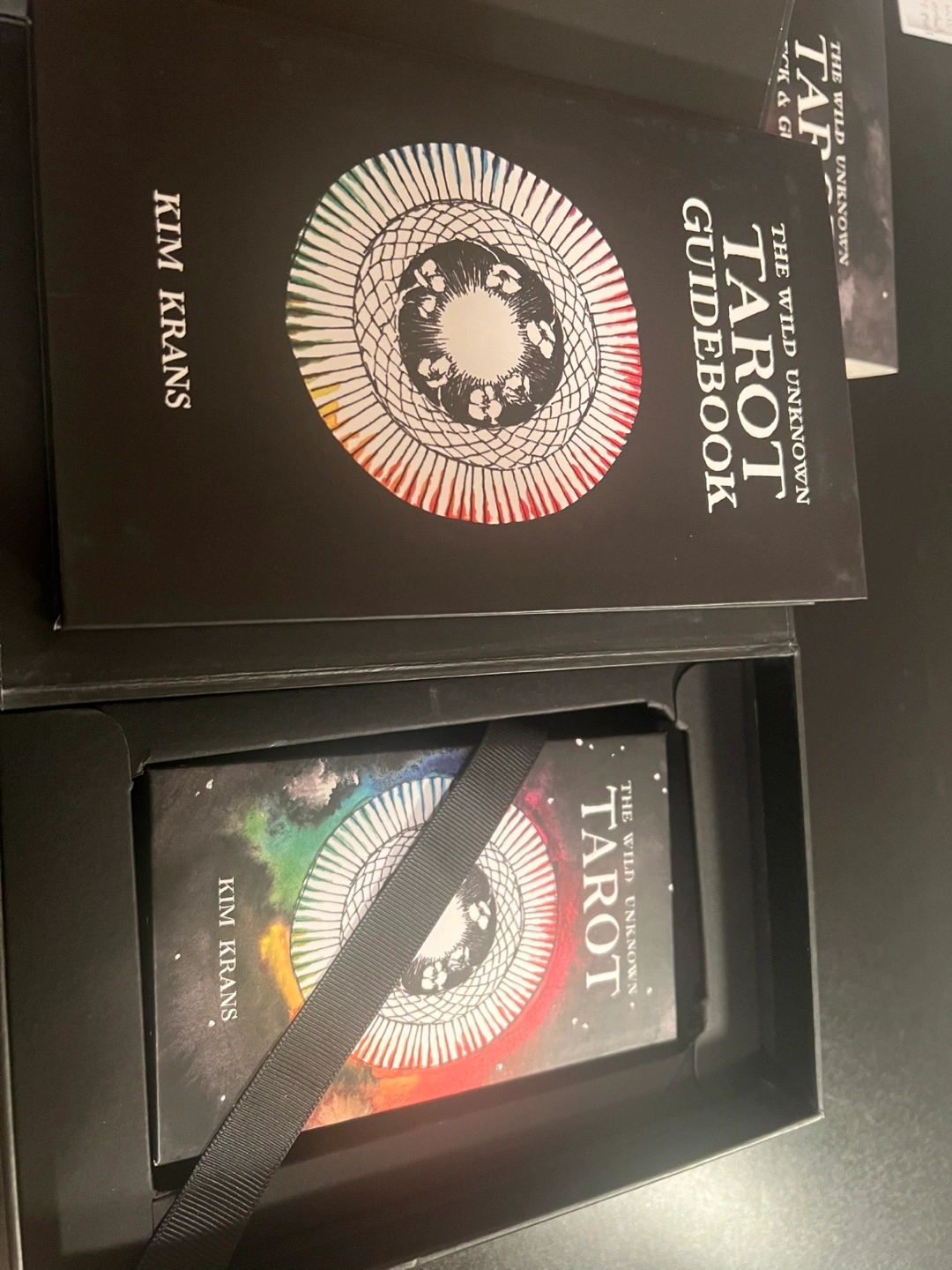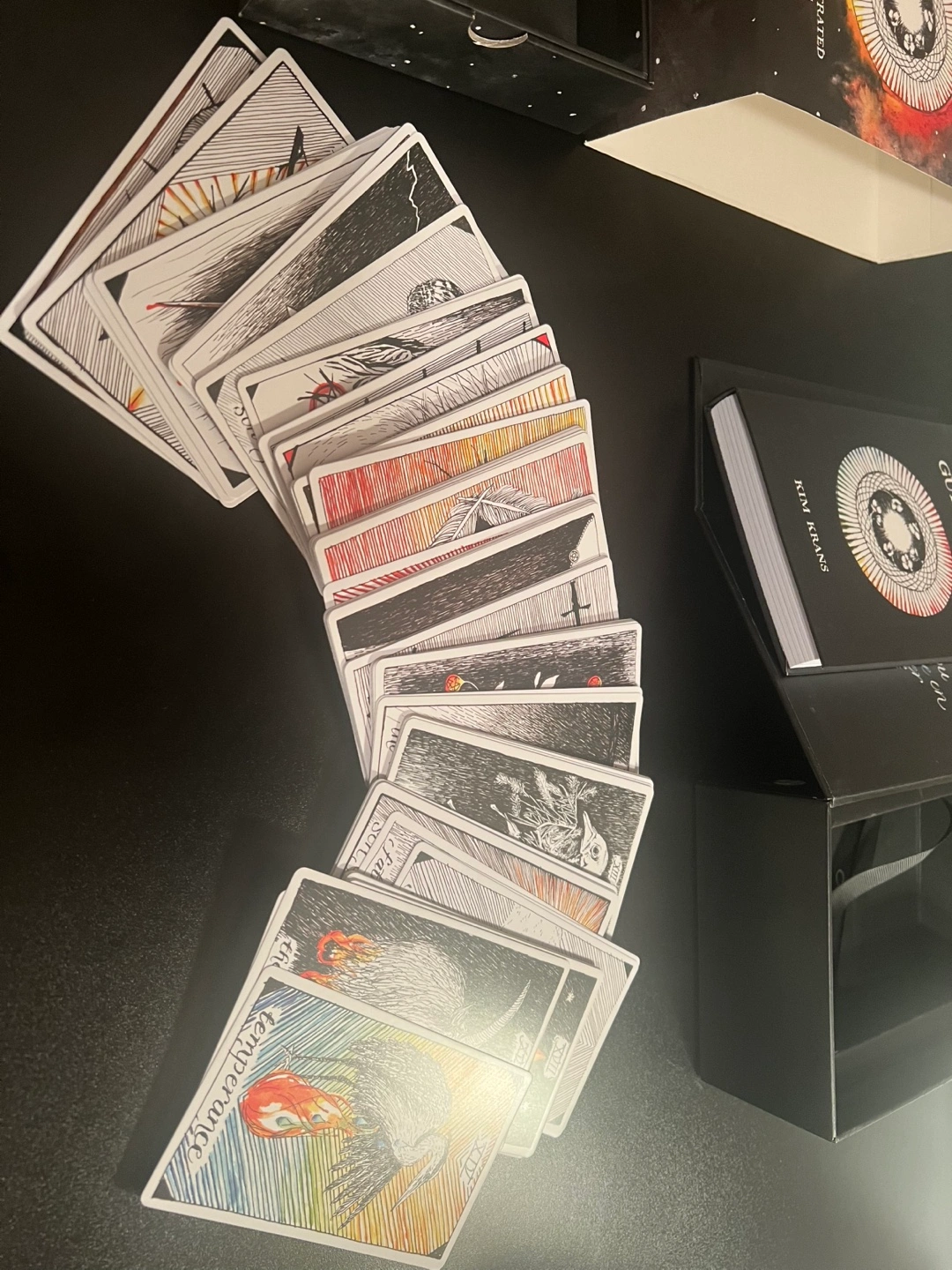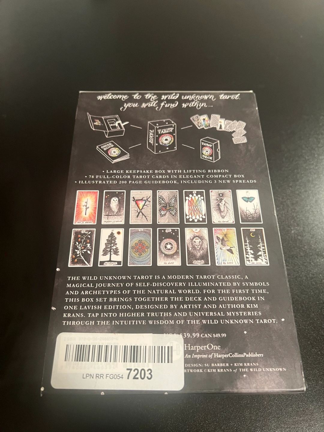 78 full-color tarot cards. Illustrated 200-page guidebook. Elegant compact box. Includes 3 new spreads. A magical journey of self-discovery. It’s basically fortune telling. Cash only.