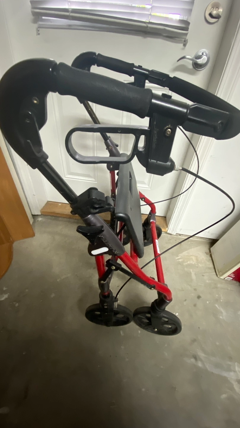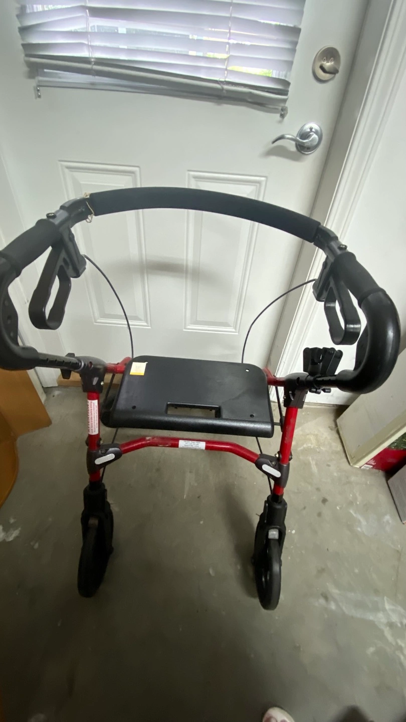 Lightweight, foldable rollator walker. Features adjustable height handles, comfortable hand grips, and a built-in seat. Excellent for mobility and support. Pick up Only Newwestmister