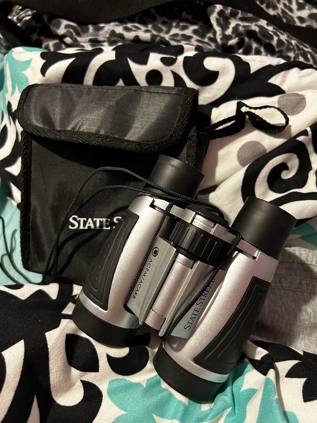 Compact binoculars, great for travel. Includes a carrying case. Silver and black. Lightweight and easy to use. 🎀Bundle items for discounts when purchasing more then one item🎀