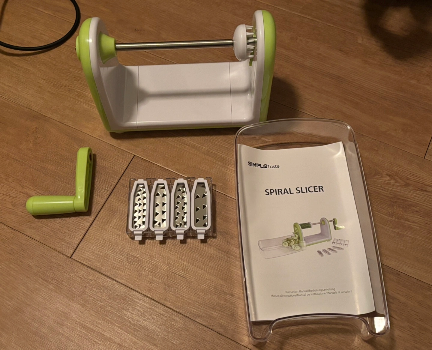 Green veggie slicer, makes thin spirally cuts. Brand new.