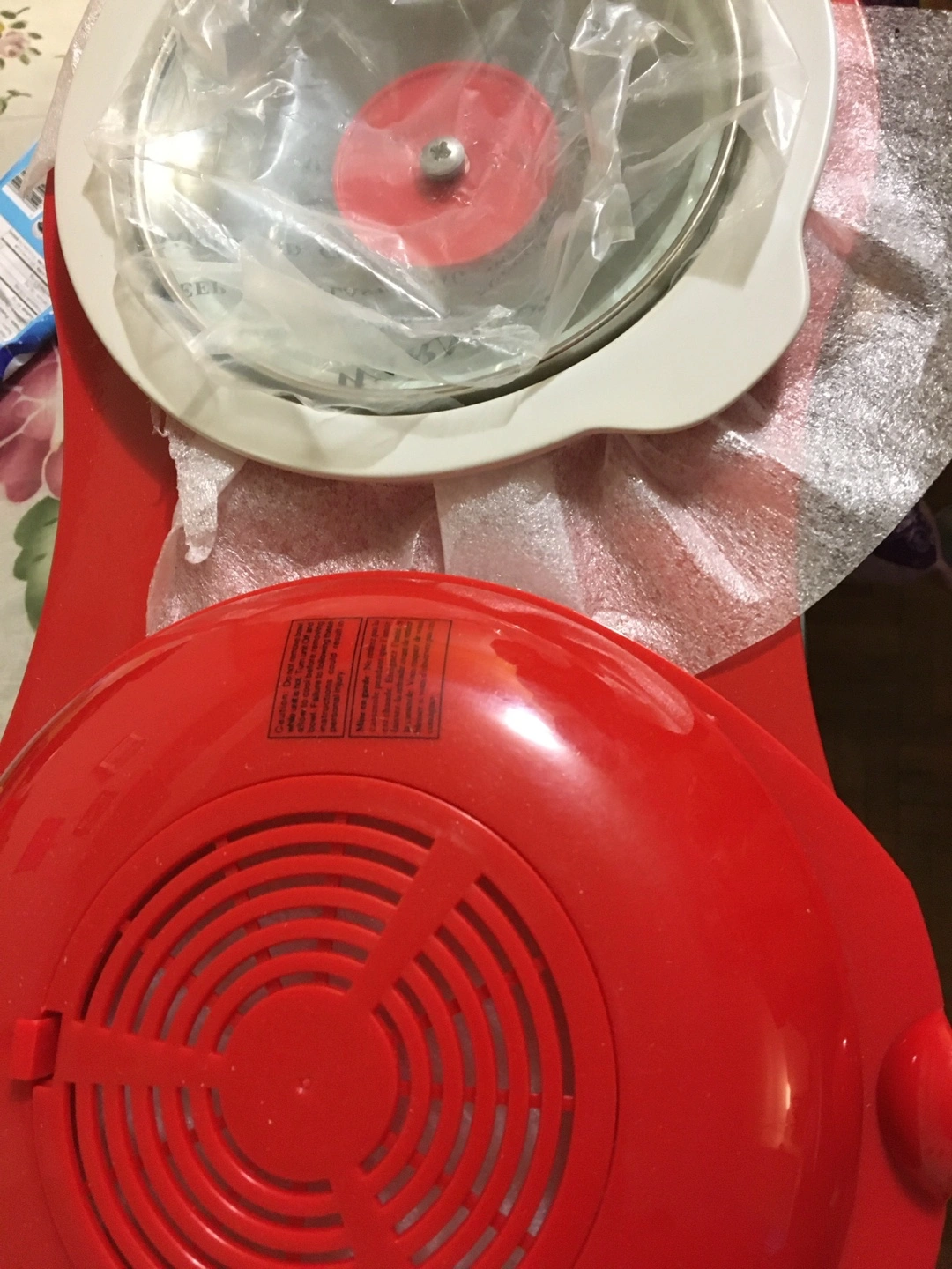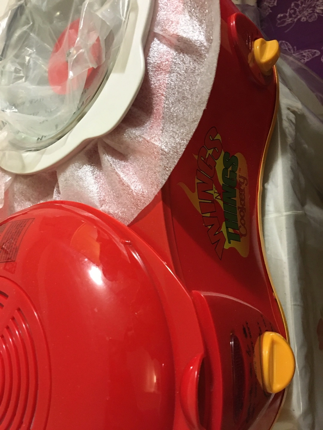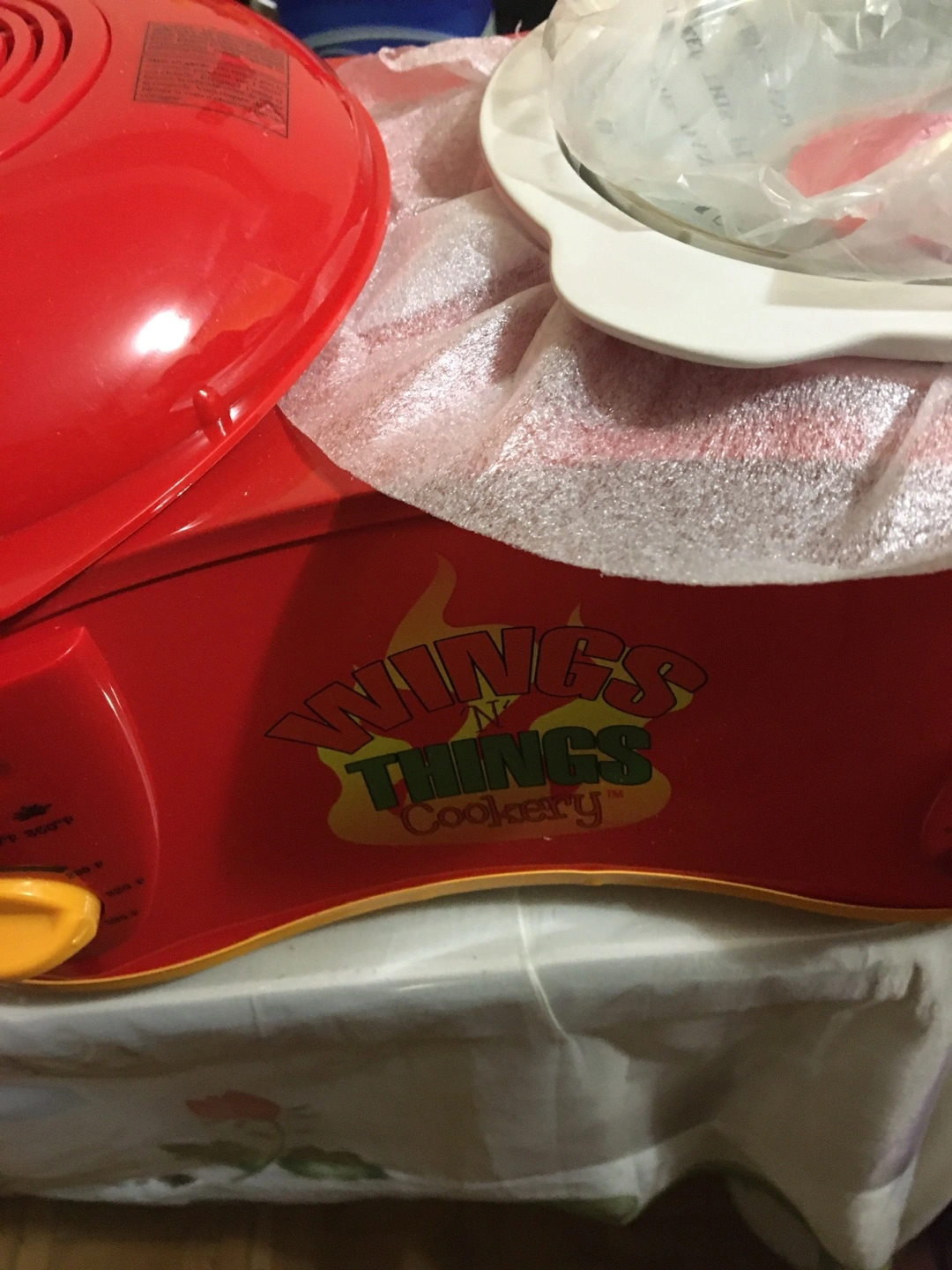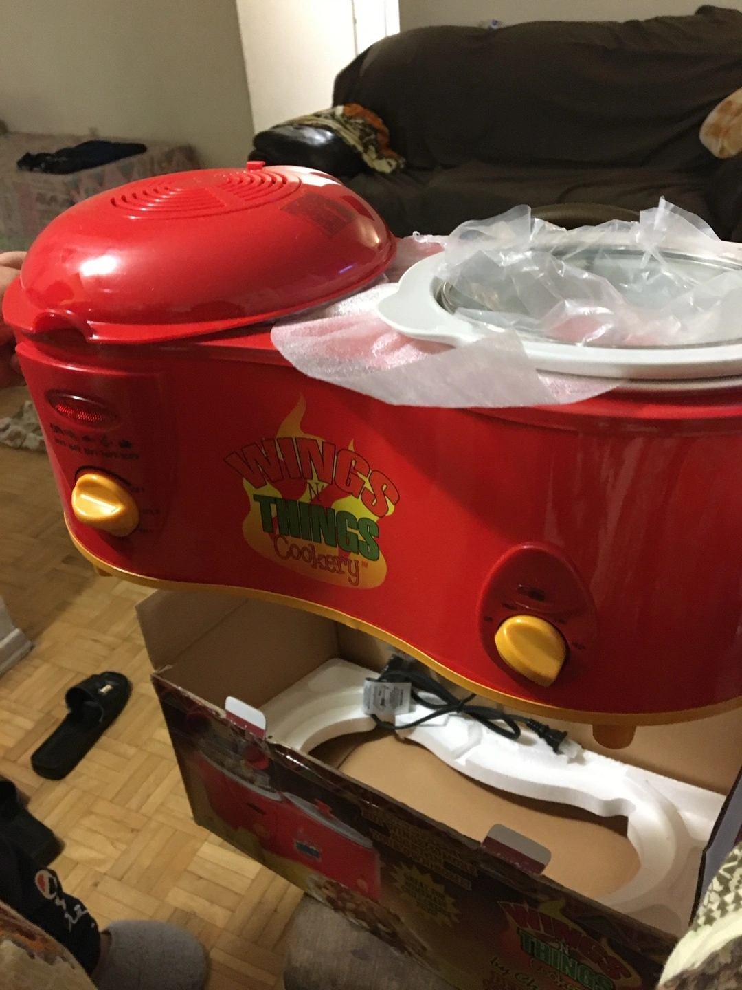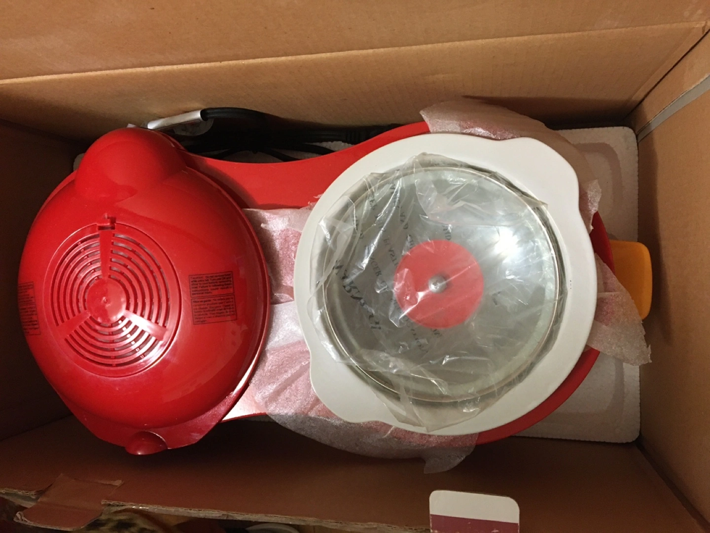 Brand new, still in box. Red electric cooker. Two separate cooking sections. Ideal for wings and other small dishes.