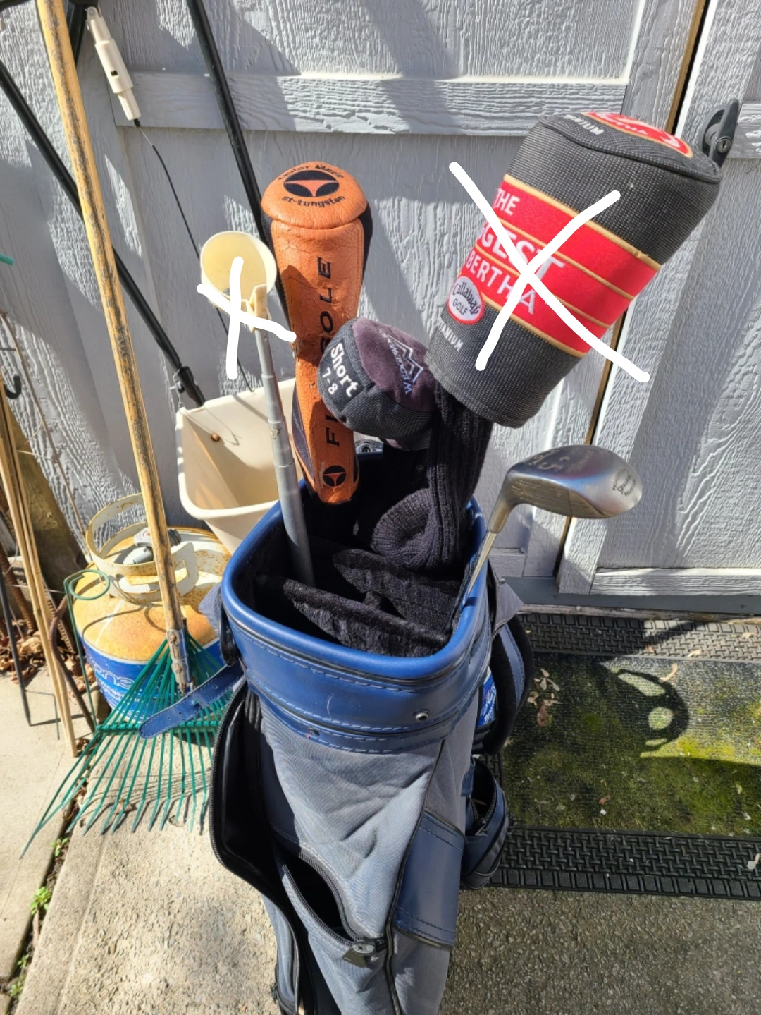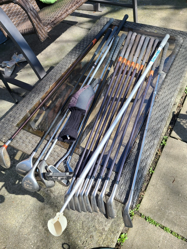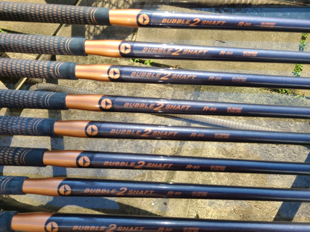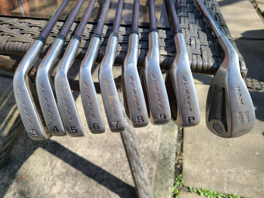 Set of Burner irons 3-P, plus a sand wedge. Bubble 2 shafts. Includes other clubs, check pictures for details. Used condition.