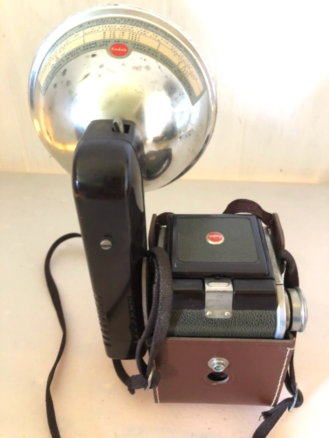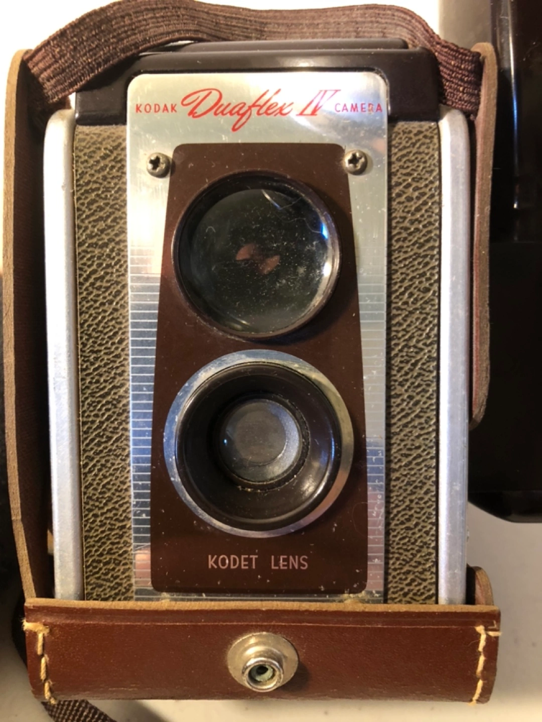 Vintage Kodak Duaflex II camera. Brown leather case. Includes flash attachment. Great collectible item. Check my other posts