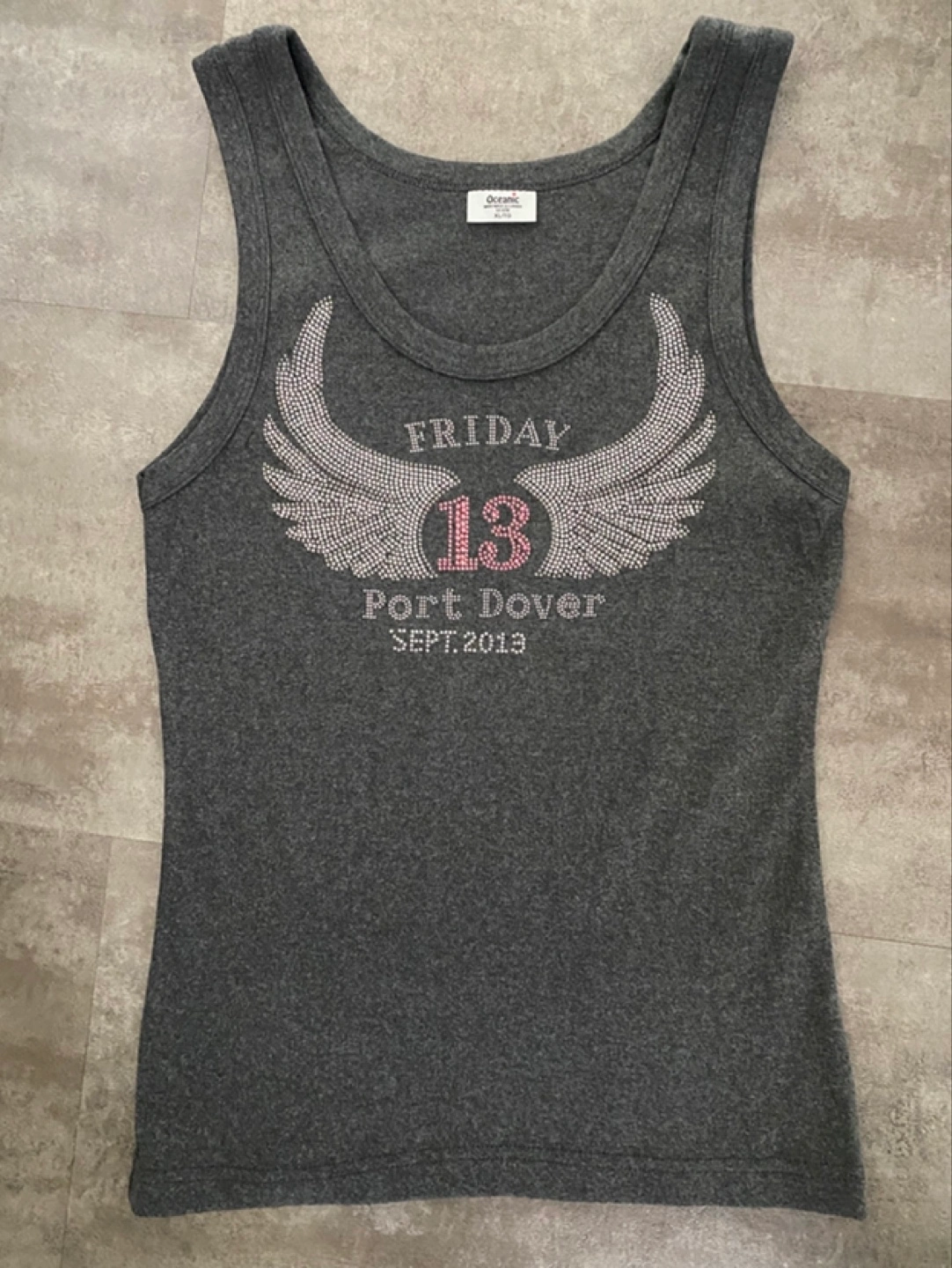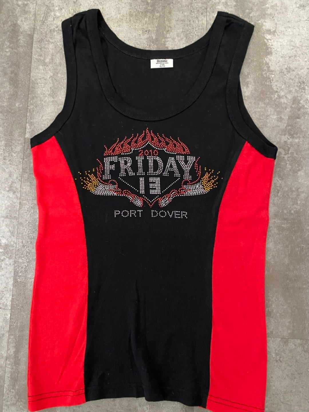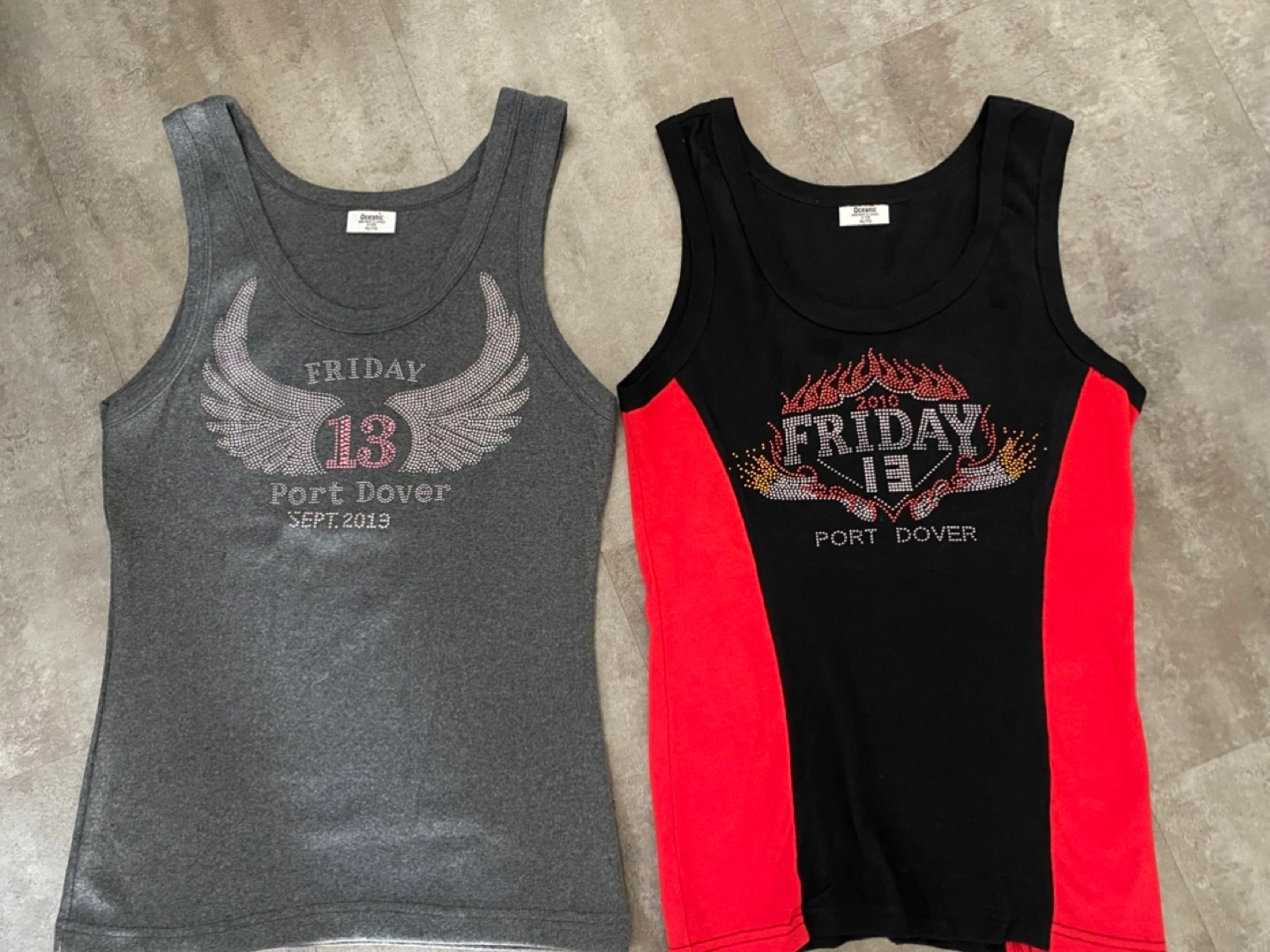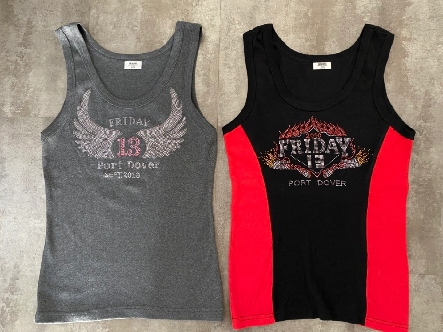 Women’s Friday the 13th Port Dover tank tops! Size XL but fits smaller. Just collected, never worn. Downsizing my collection! Excellent Condition! Each $10 Both have bling on the tank tops. Cash and pick up only, Cawthra and Lakeshore area in Mississauga.