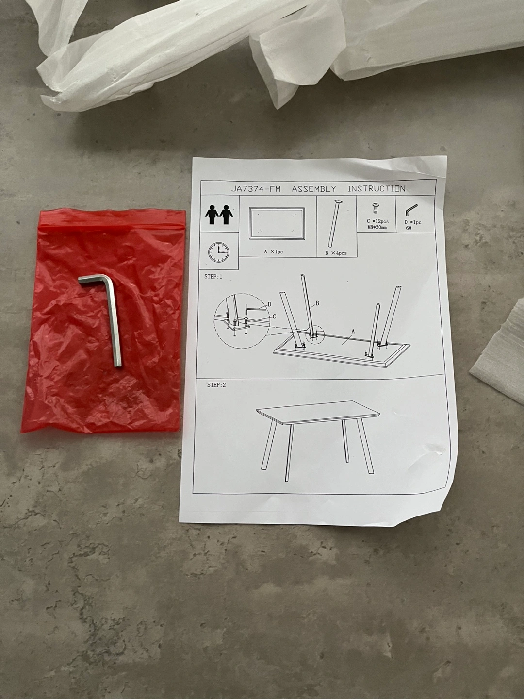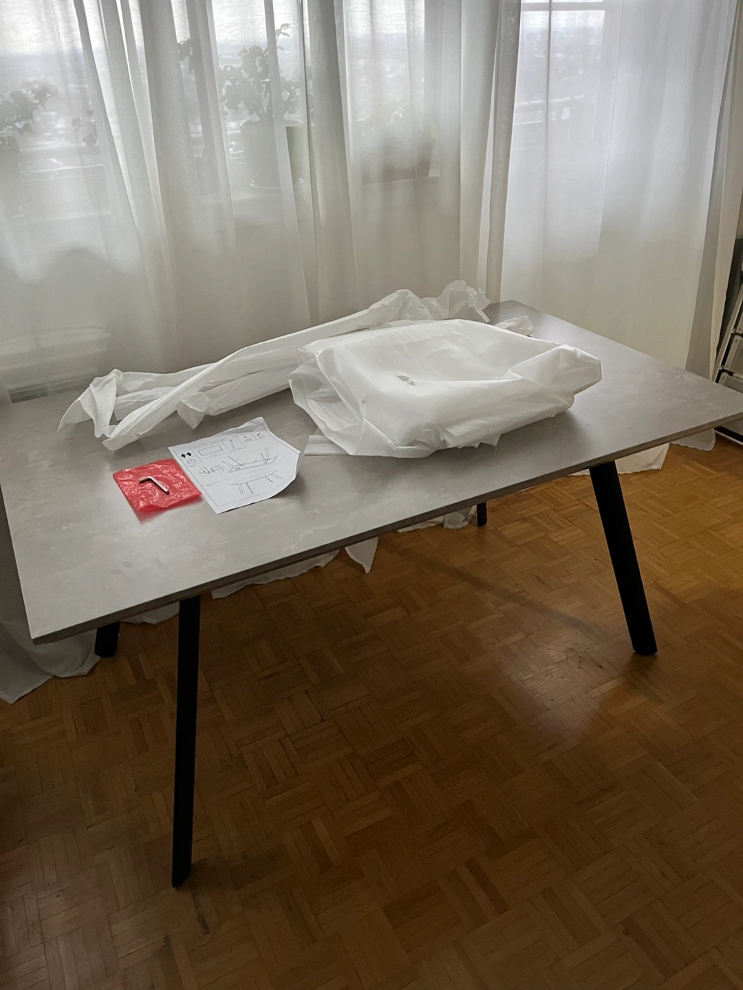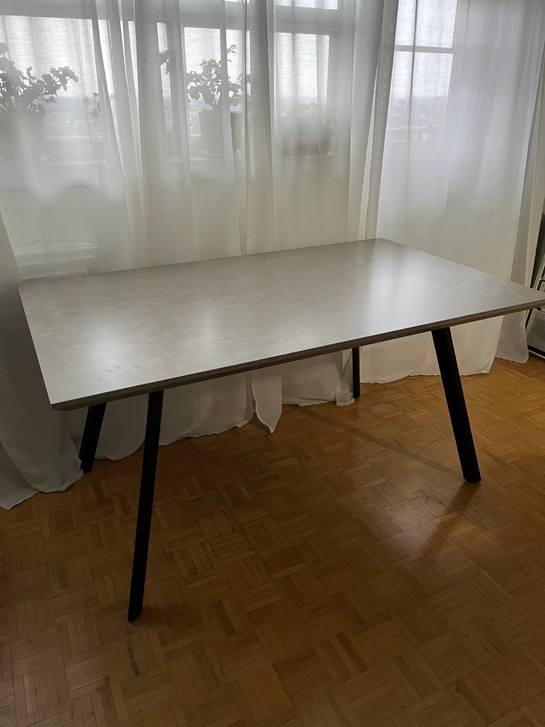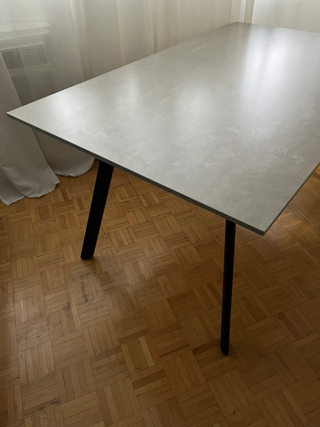 George Oliver grey concrete look dining table with black metal legs. Includes assembly instructions and wrench. Never used. Unassembled ready for transportation. Delivery for reasonable distance $25