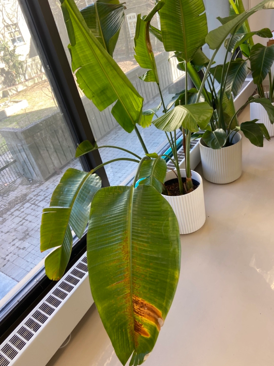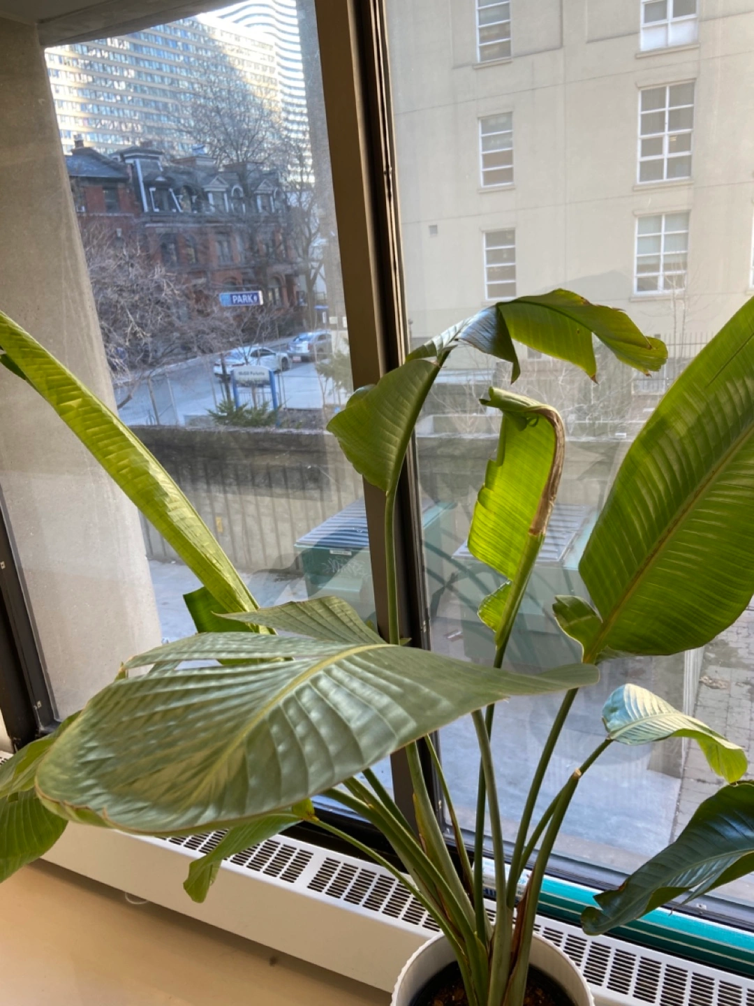 Large Bird of Paradise plant, doesn’t come with white pot. Some leaf damage and issues with pests. Free for pick up only