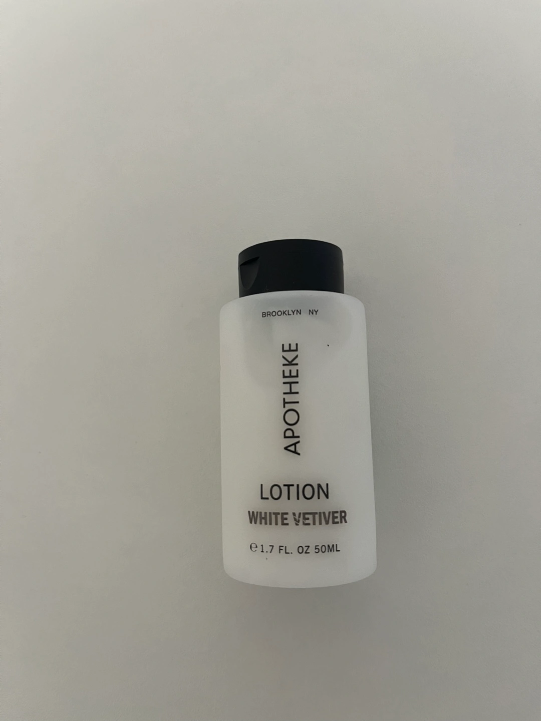 Apotheke lotion, White Vetiver scent. 50ml bottle. Brooklyn, NY.