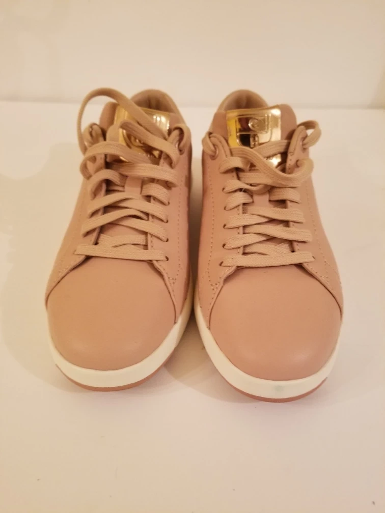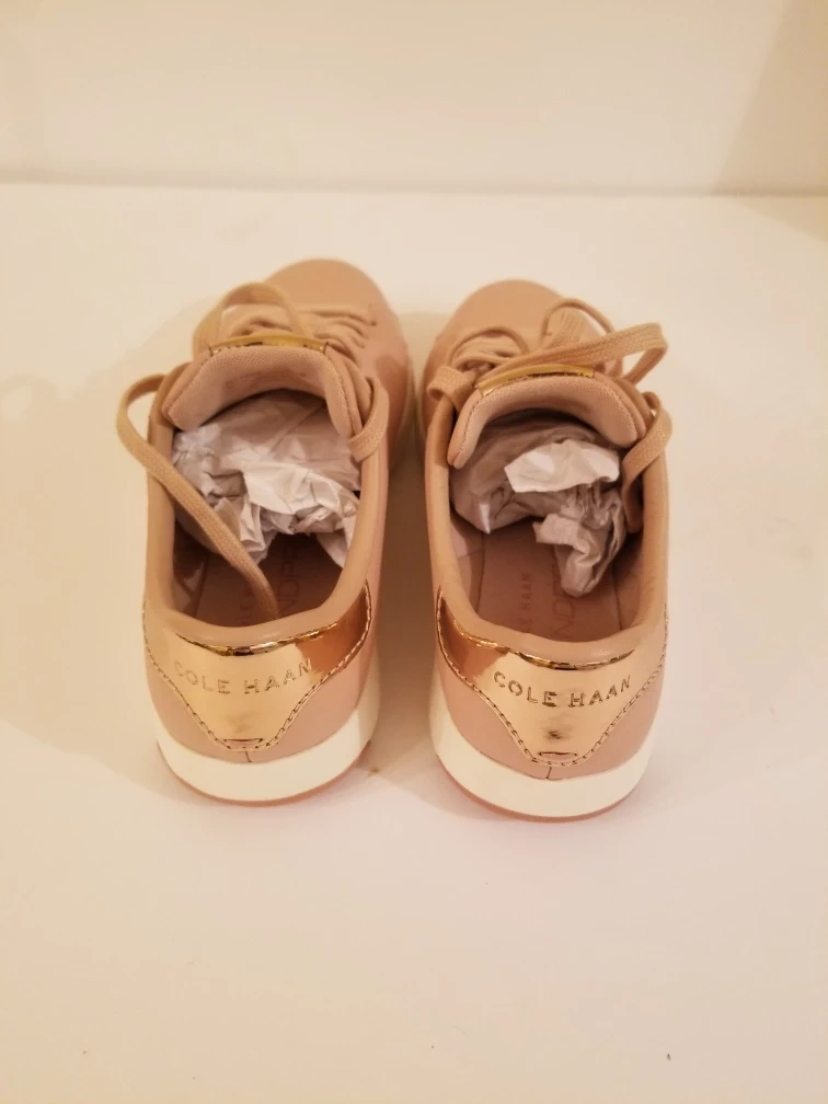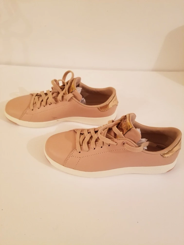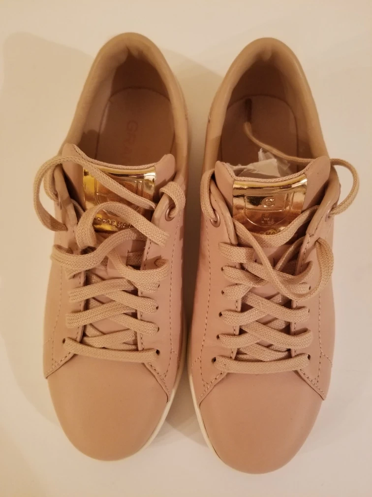 Women's Cole Haan GrandPrø-Runner sneakers. Blush pink leather upper. Rose gold accents. Lace-up closure. Lightly cushioned insole. Great for everyday wear.
