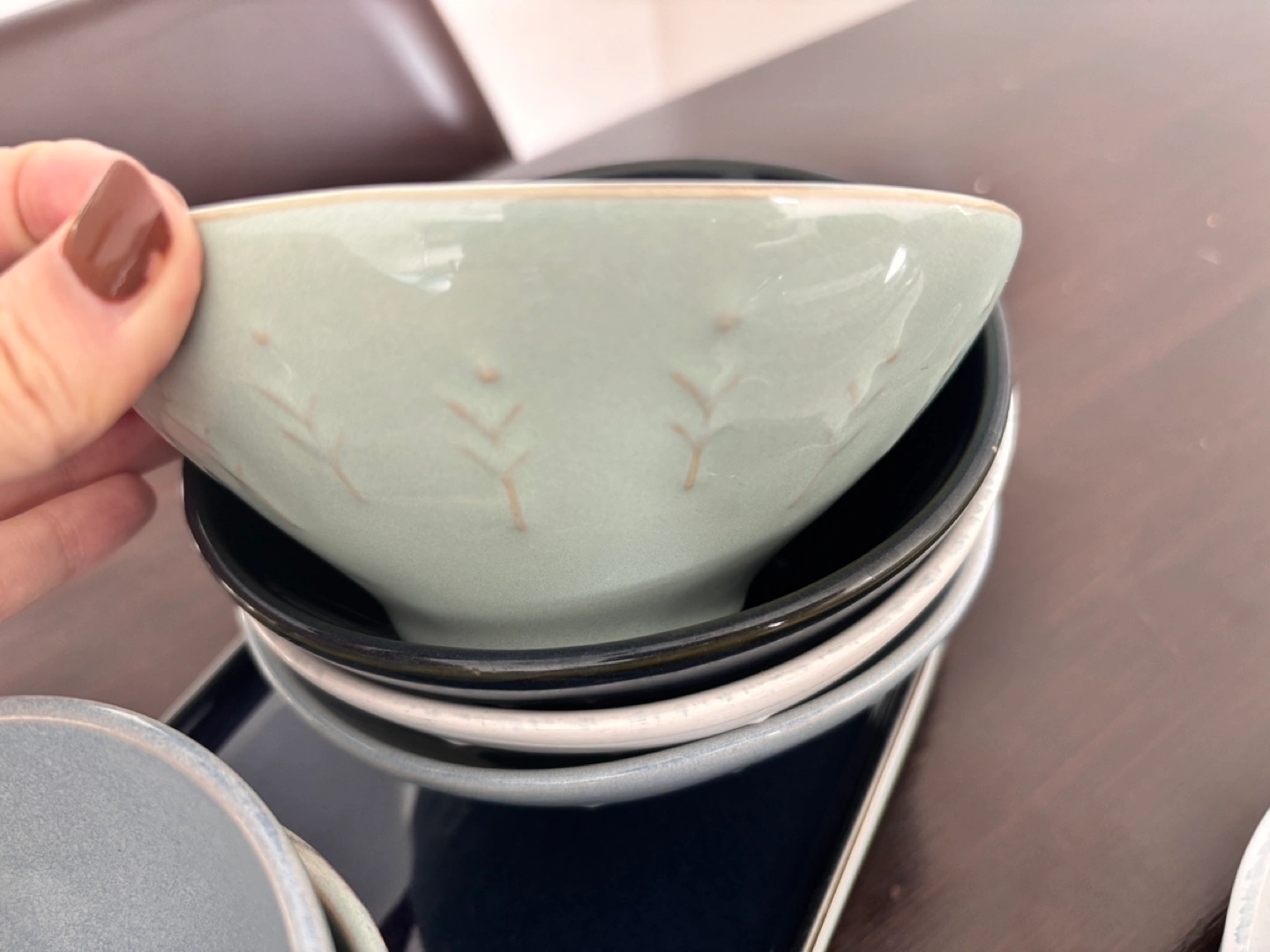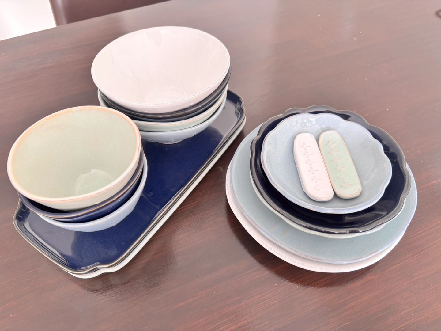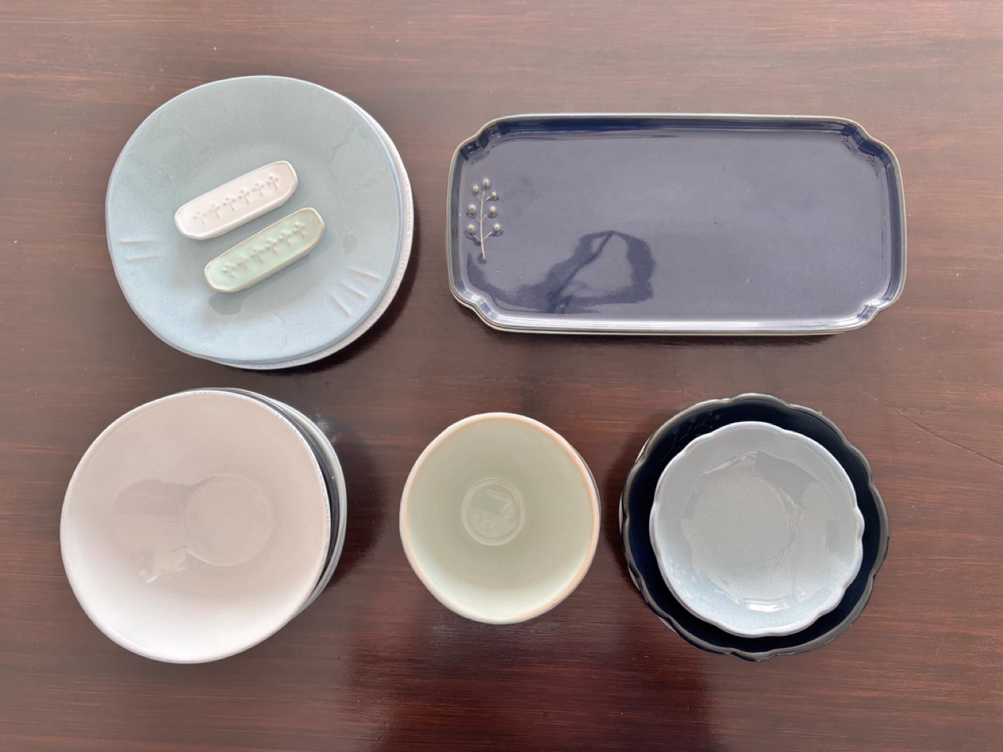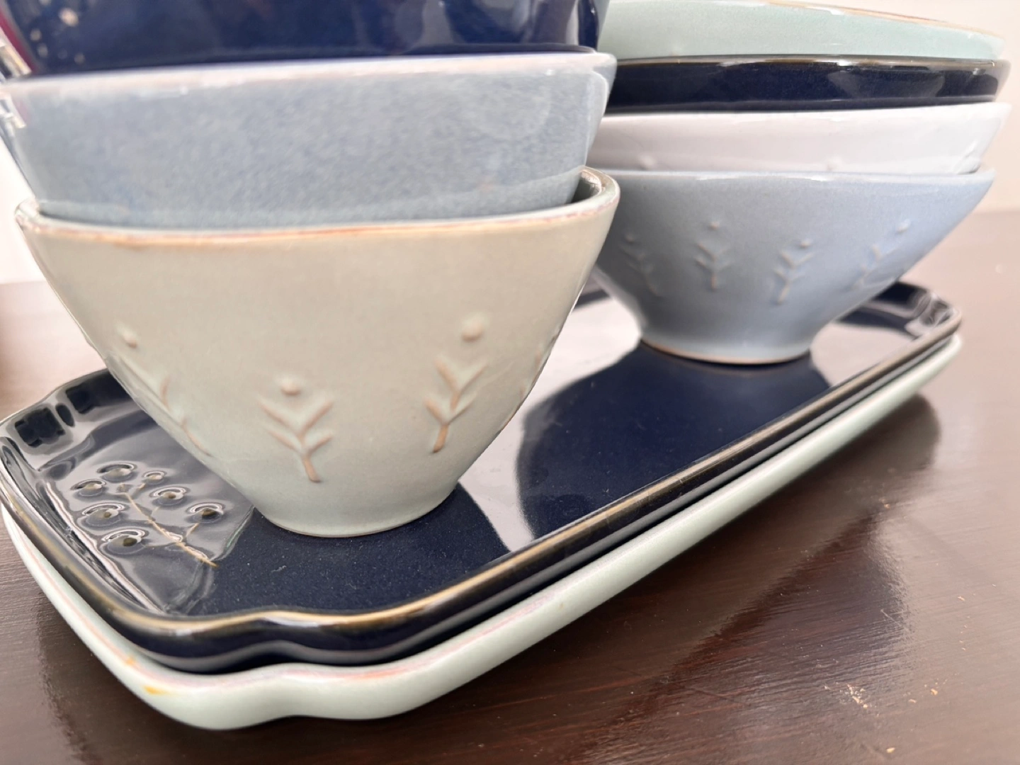 Lovely set of ceramic bowls and plates. Various sizes and colours. 4 Large bowls 3 Small bowls 2 Large plates 2 Medium plates 1 Small plate 2 Trays 2 Cutlery holders Pickup @ Olive Square Park