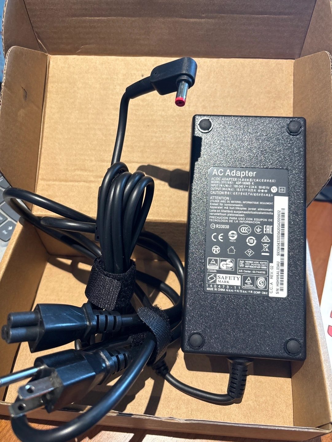 65W AC/DC adapter. Includes power cord. Model: ADP-180MB K 19.5 V 100-240 V 50-60 Hz