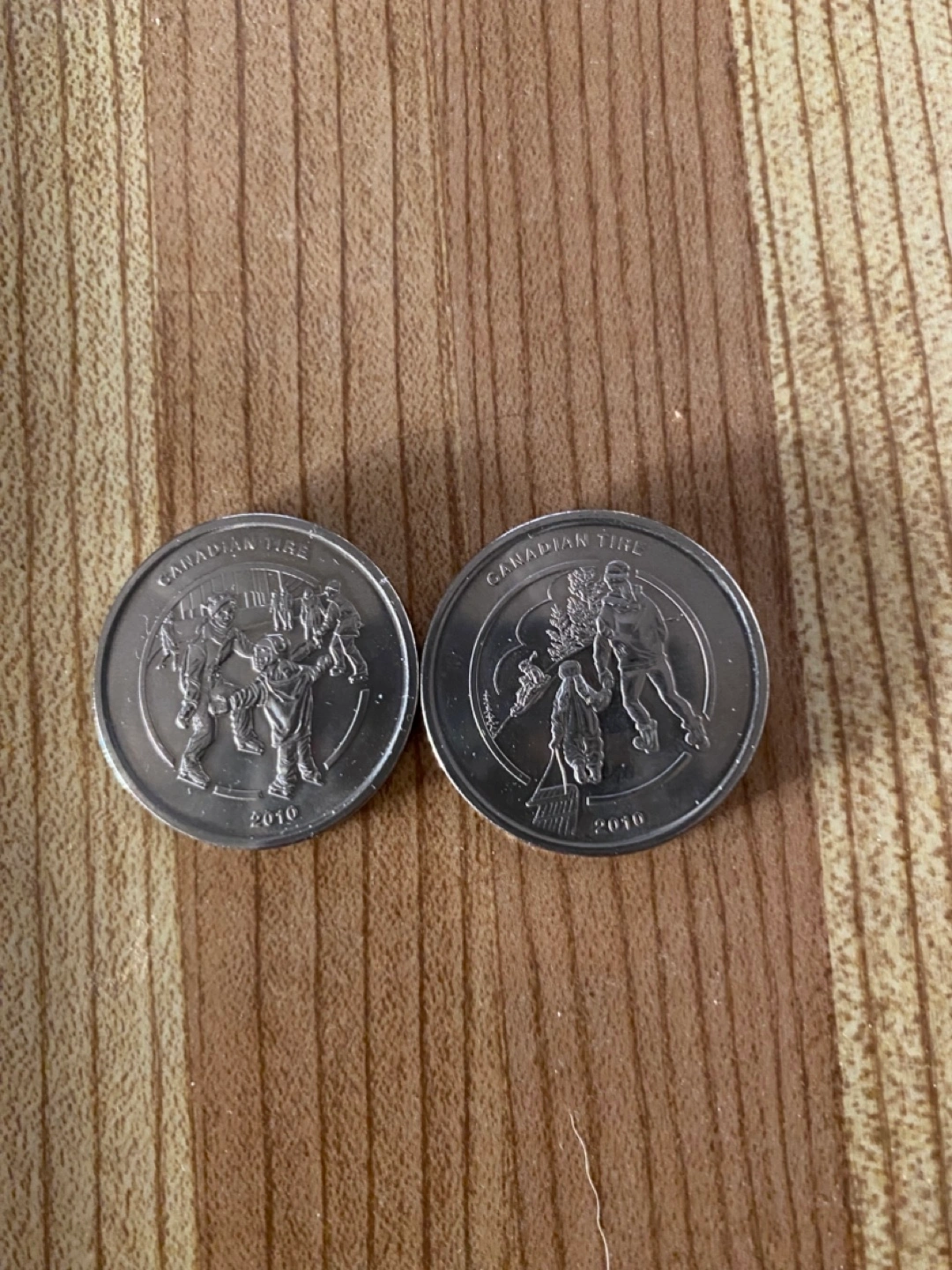 $5 ea .Two 2010 Canadian Tire commemorative coins. Show different winter scenes. Collectible.