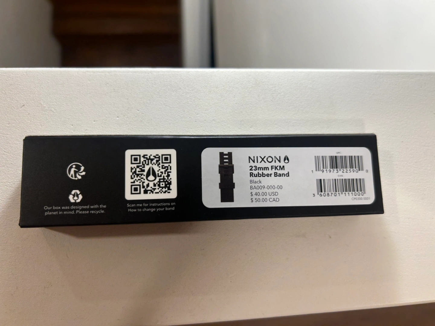 Brand new, never used. 23mm quick-release band. Black rubber material. Comes in original packaging. Paid $50 plus shipping, my loss your gain.