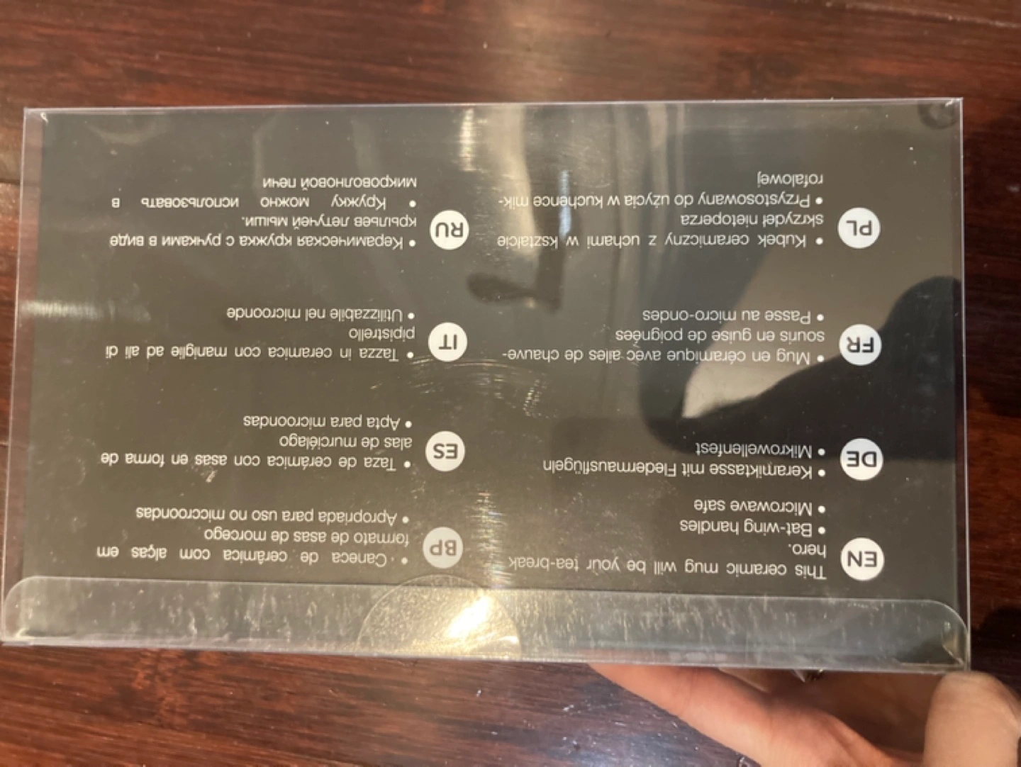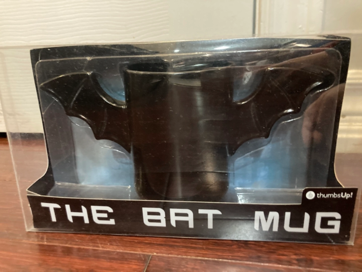 Black ceramic mug. Bat-shaped handles. Microwave and dishwasher safe. New in box. SFPF home. Porch pick up near Dufferin and Centre, Thornhill.