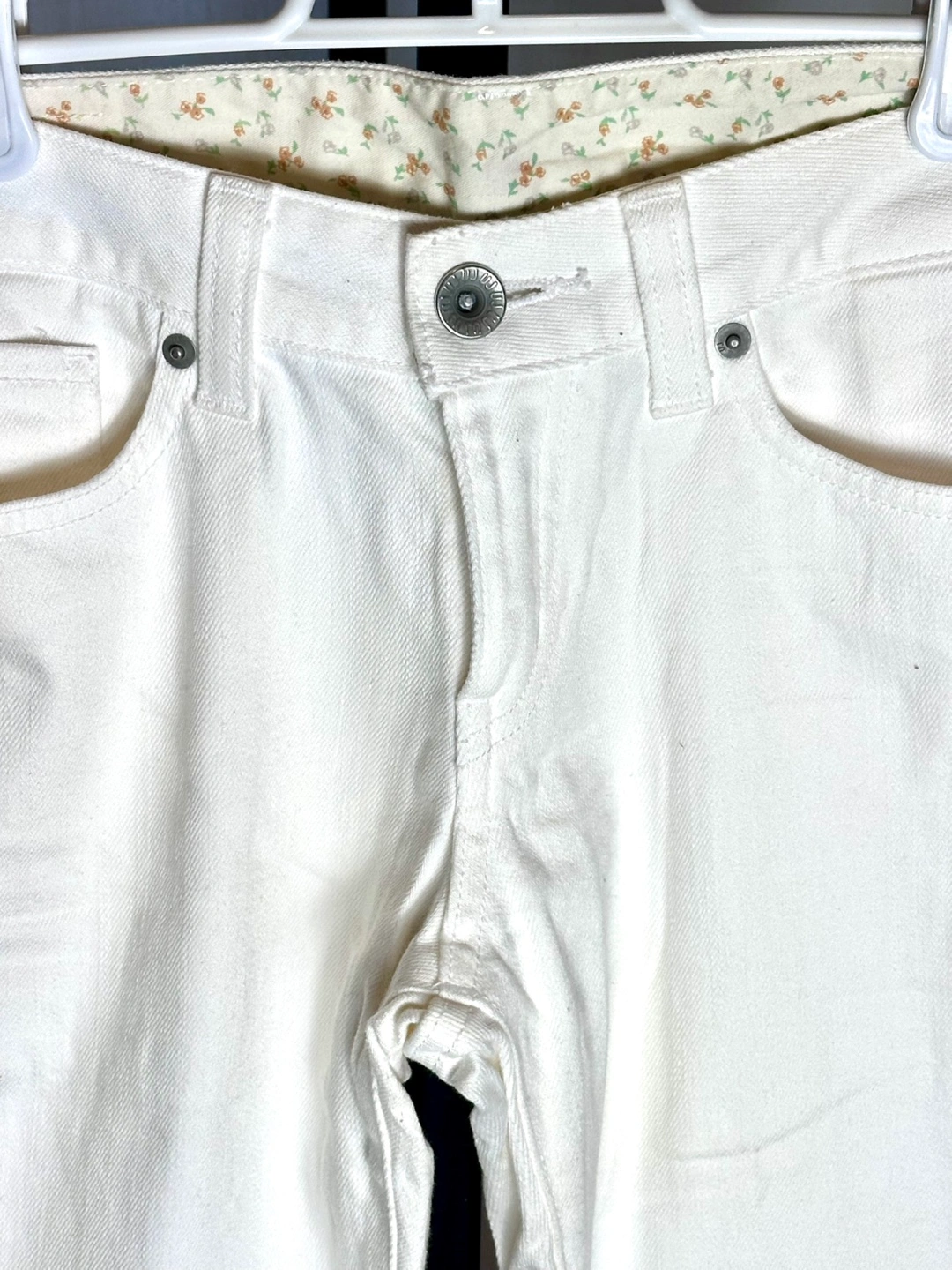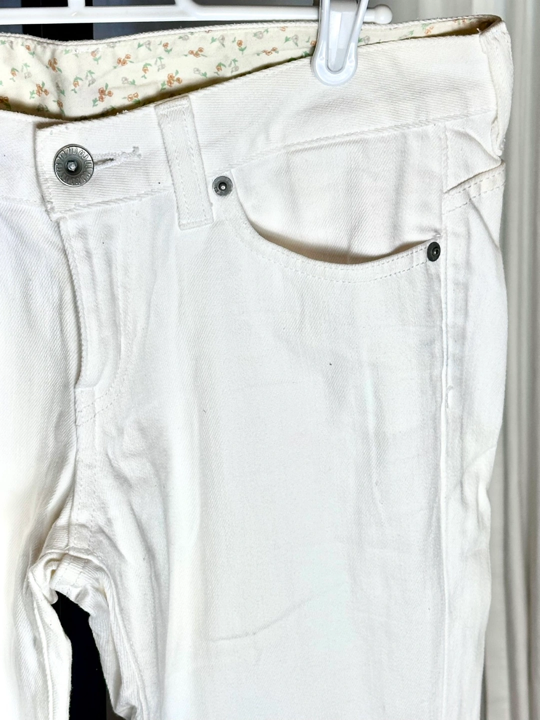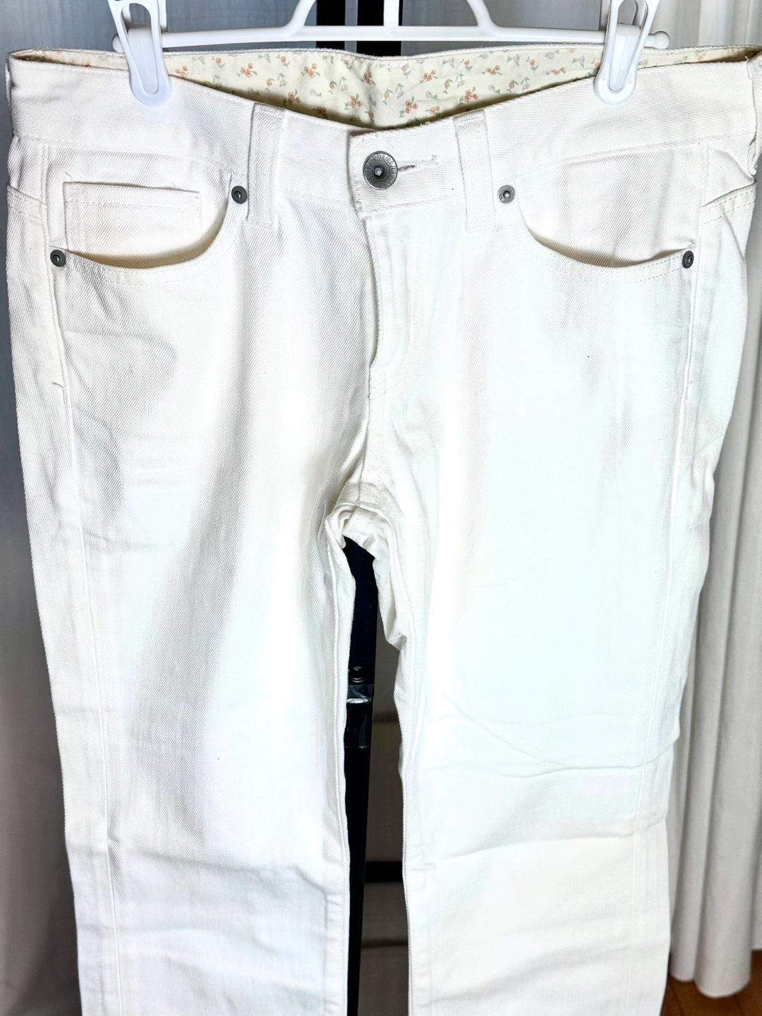 Women's UNIQLO Off-white women's jeans Size 27 x 33 inches. 98% cotton, 2% elastane. Straight leg. With floral print inside the jeans. Rock classic white jeans this summer.