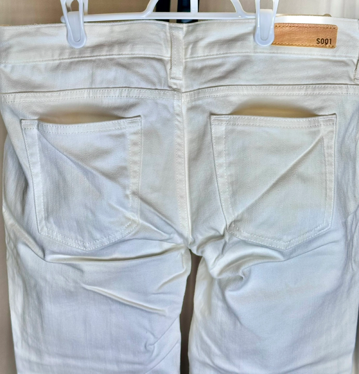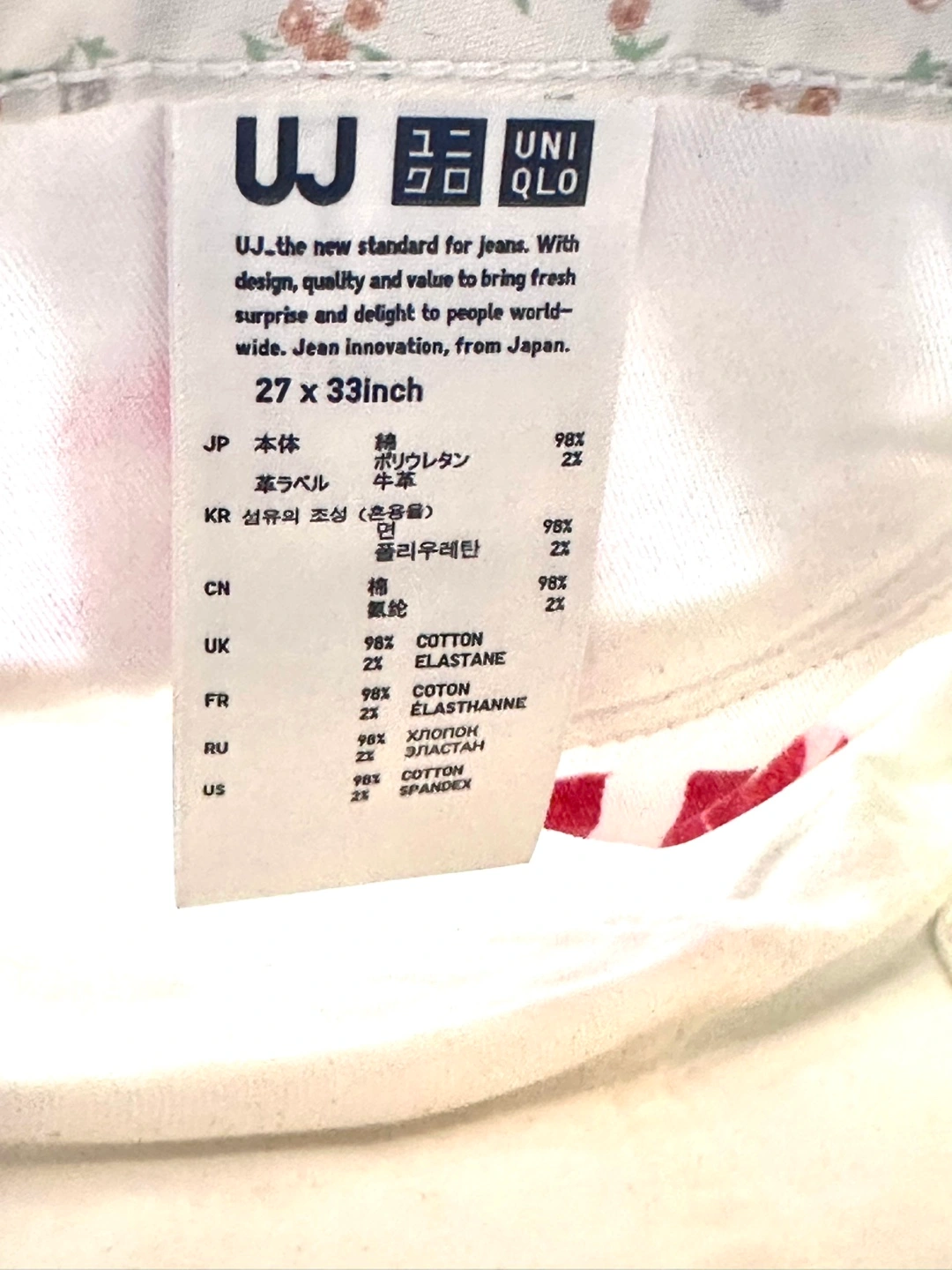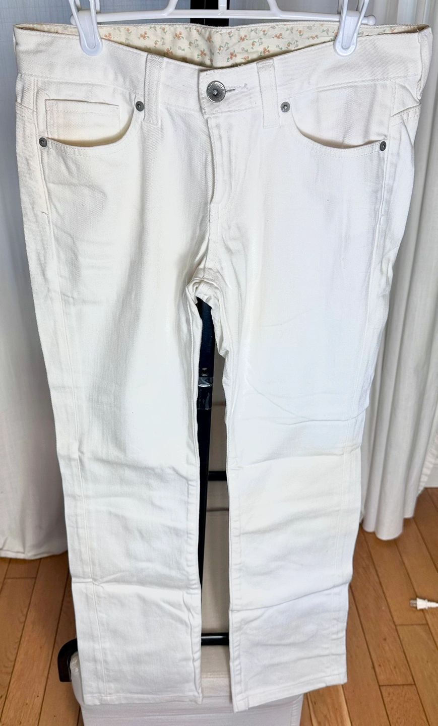 Women's UNIQLO Off-white women's jeans Size 27 x 33 inches. 98% cotton, 2% elastane. Straight leg. With floral print inside the jeans. Rock classic white jeans this summer.