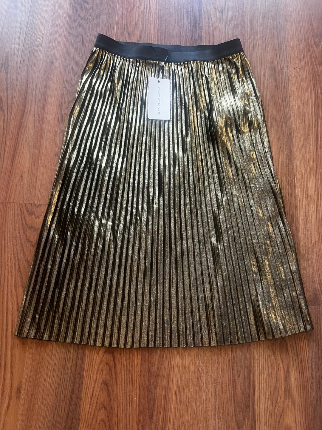 Metallic gold pleated midi skirt. Size small. Elastic waistband. New with tags Pick up at keele and Eglinton Please check other items