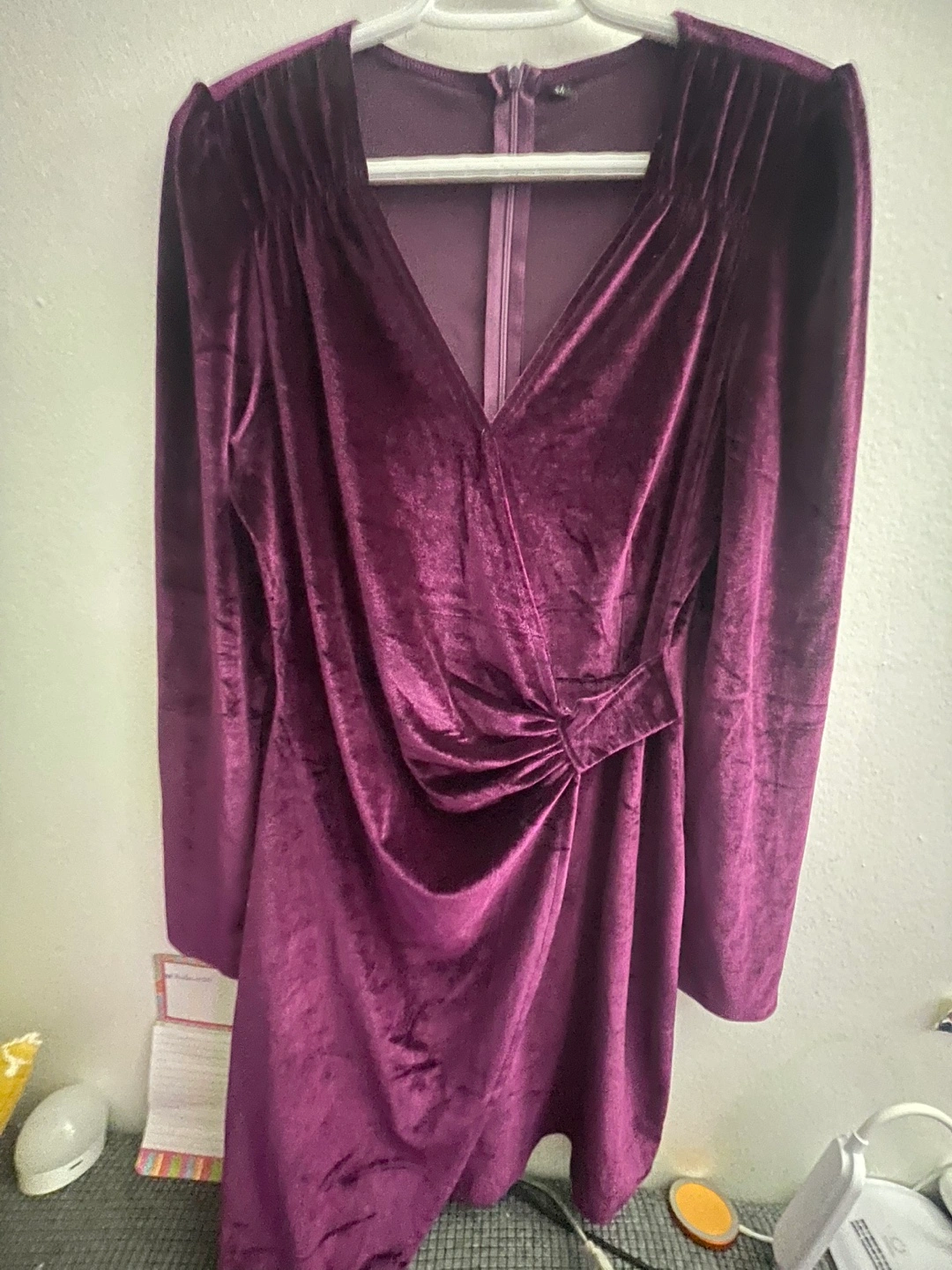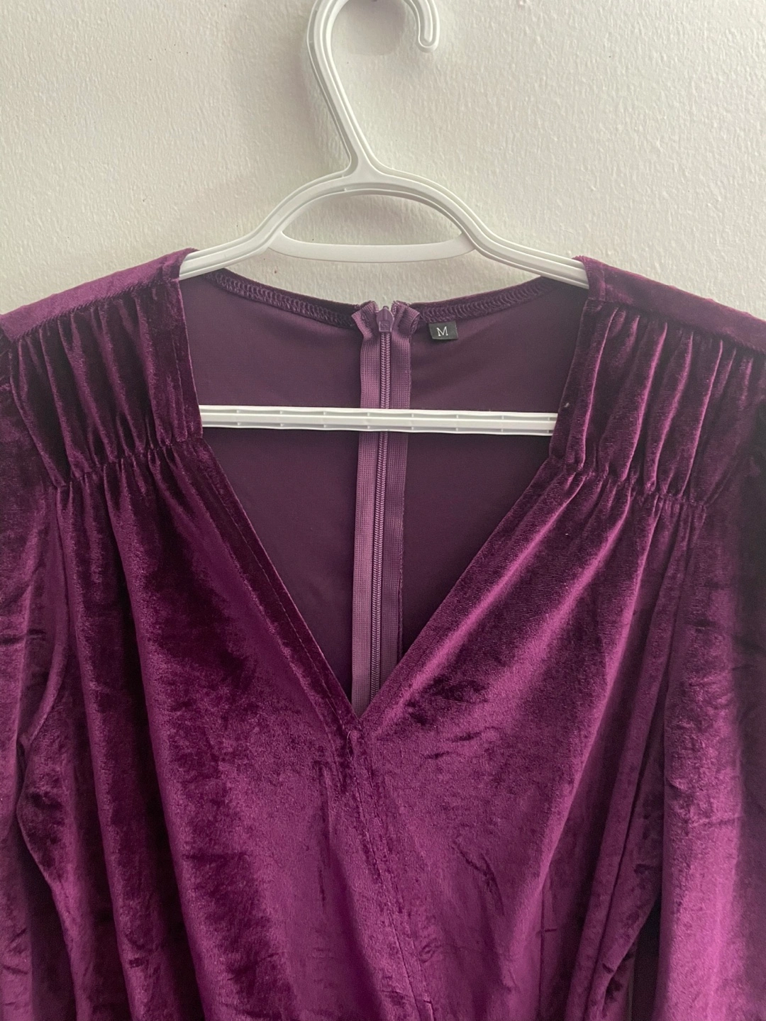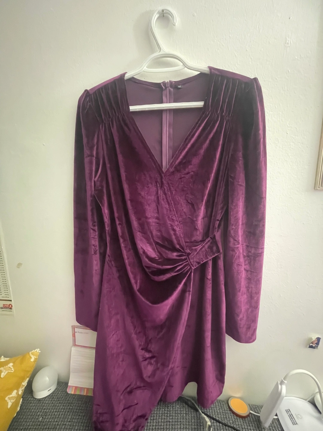 Gorgeous purple velvet mini dress. Long sleeves, V-neckline, asymmetrical hemline. Back zipper closure. Perfect for a night out $15
