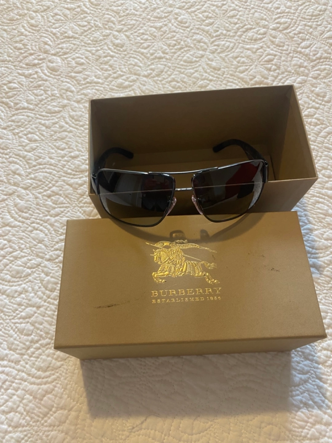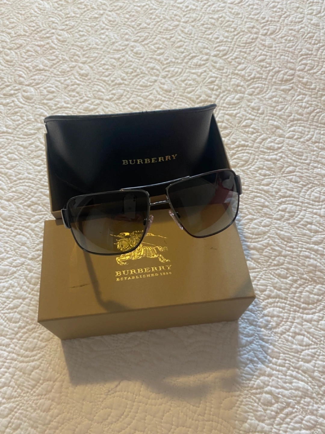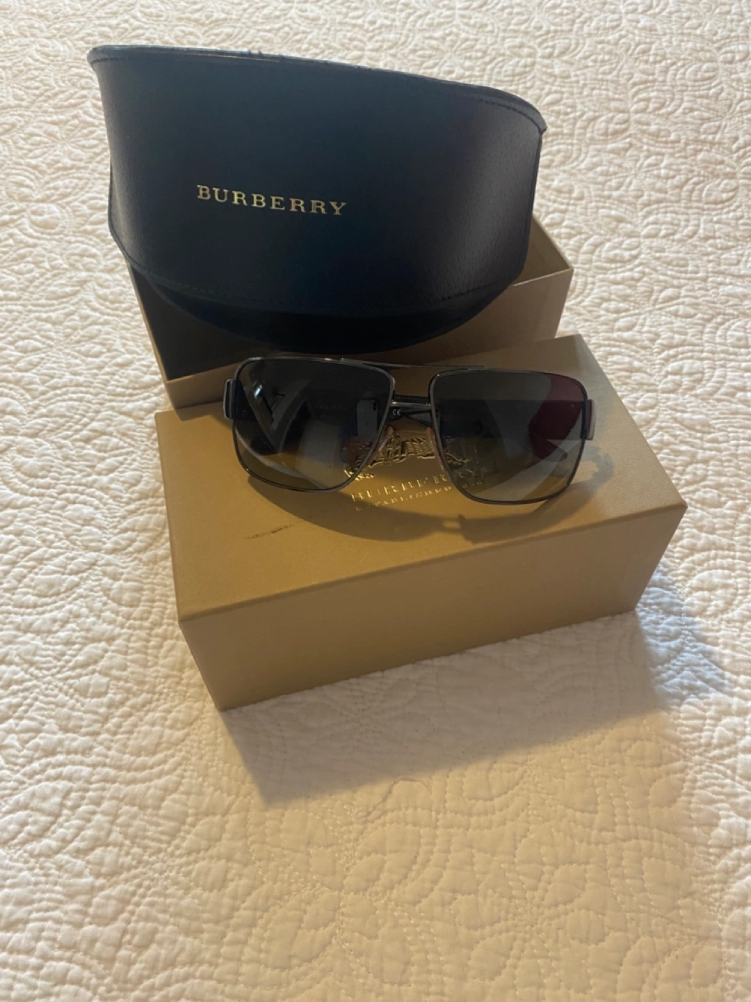 Men's Burberry sunglasses. Brown gradient lenses. Black metal frame. Comes with original box manual and case.