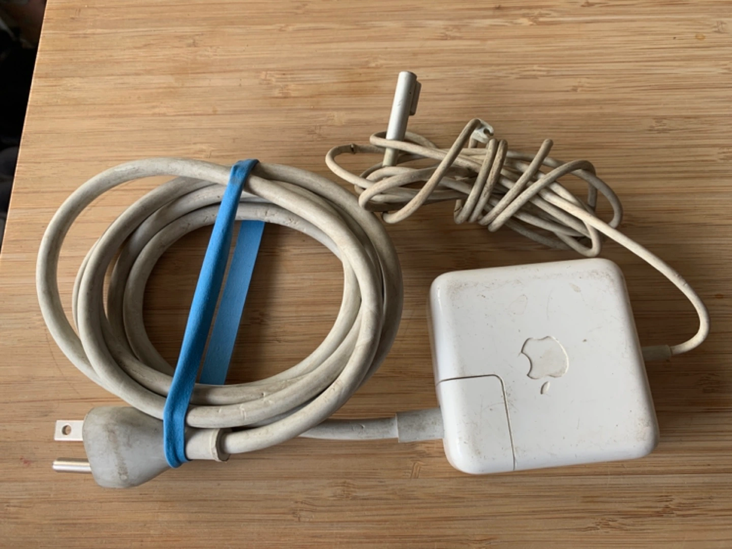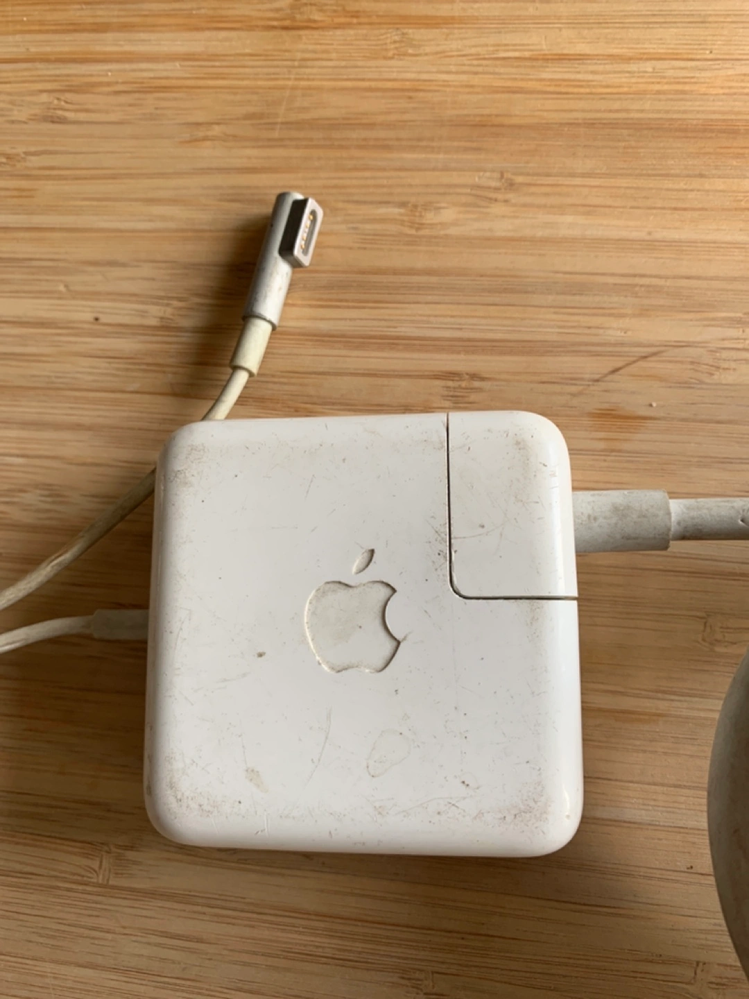 Used Apple MagSafe power adapter. Shows some wear. For older MacBooks. 2012. UNTESTED. We need to try it when we meet.
