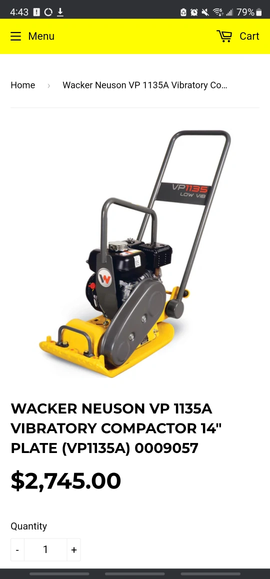 Used Wacker Neuson VP1135A vibratory compactor. Honda engine. 14" plate. Low vibration. serviced every year. git it brand new. ive had it 3 years.